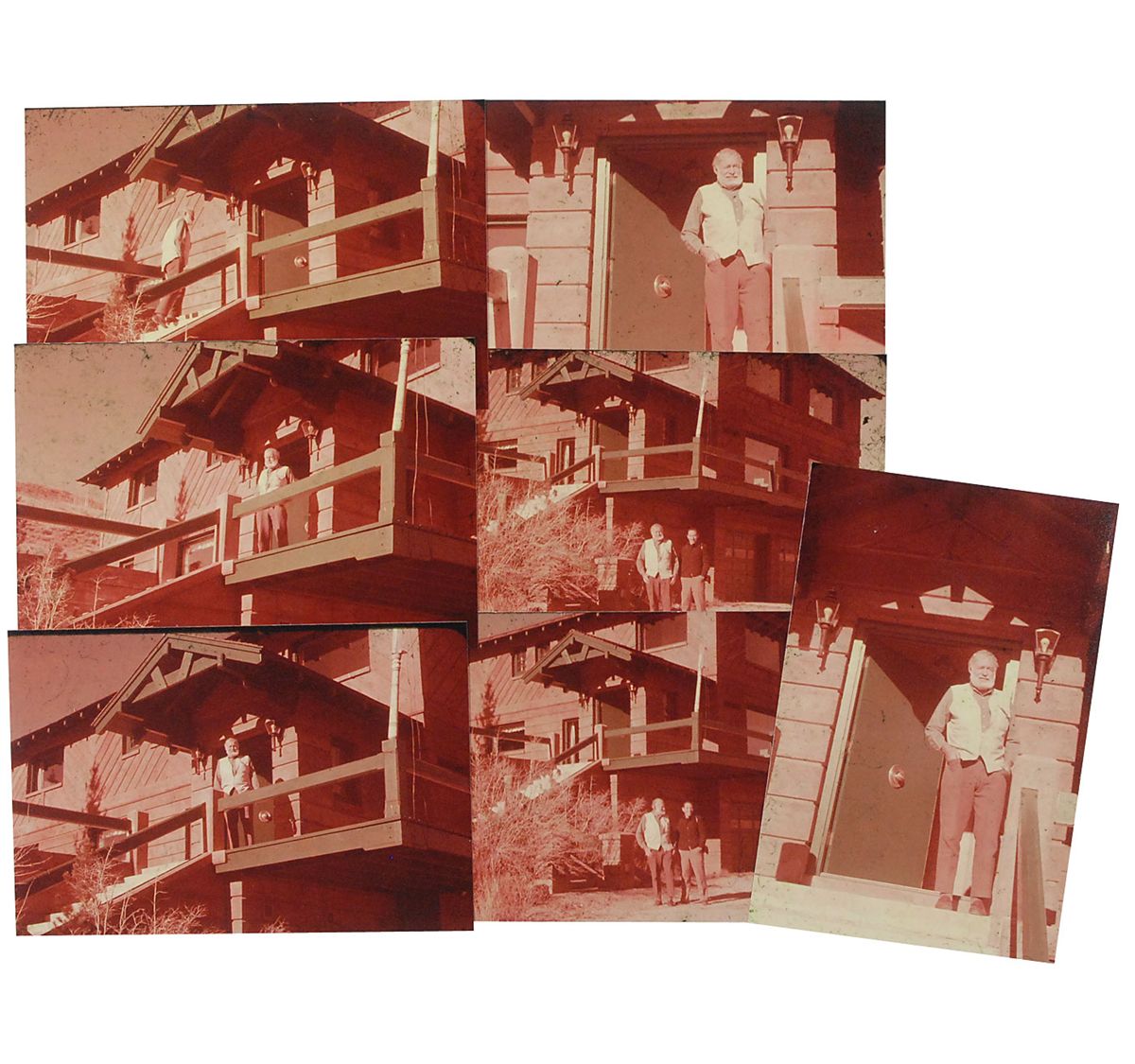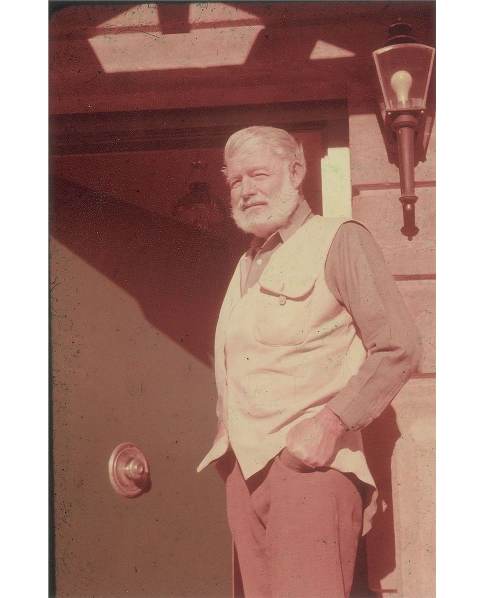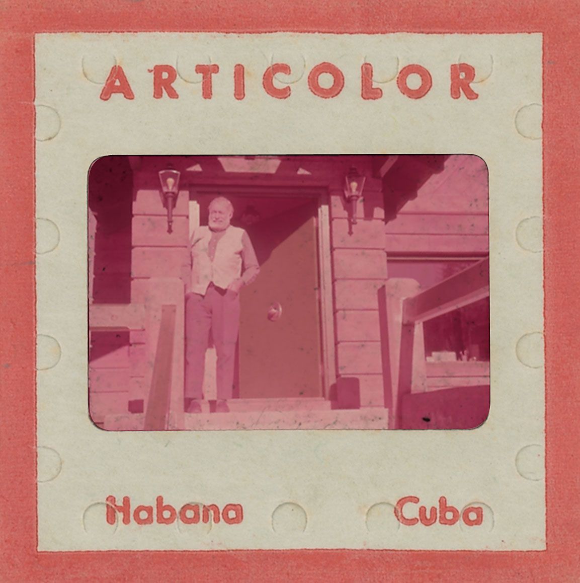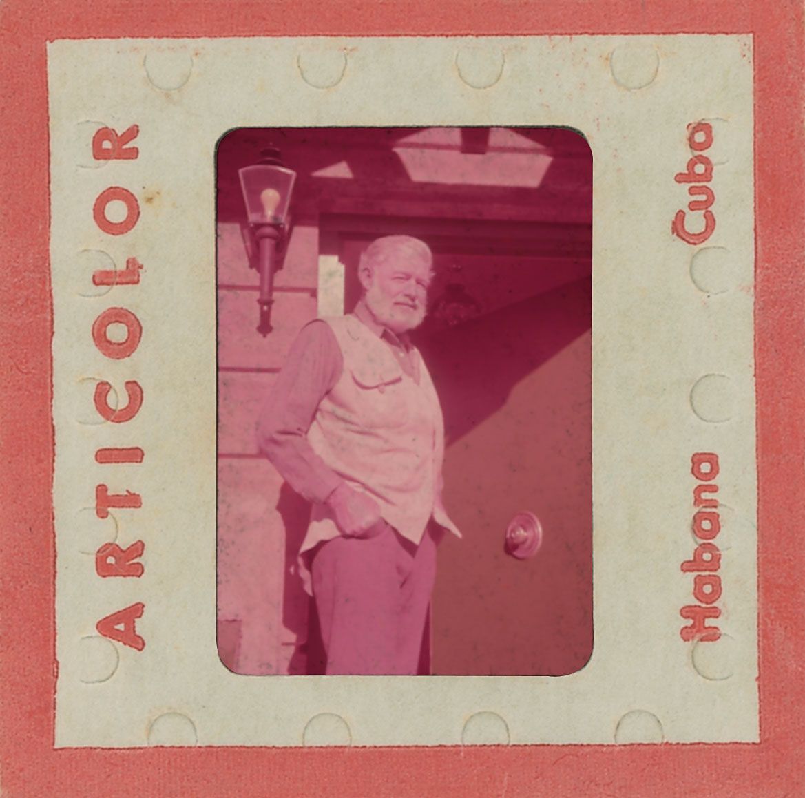 Collection of eight color candid Articolor slides of Hemingway at his Idaho hunting home, all 2 x 2, including two images of Hemingway with close friend, and future biographer, A. E. Hotchner. Hotchner visited Hemingway in Idaho in the fall of 1959 when these photos were taken, most likely by longtime friend and personals secretary Roberto Herrera, as the Articolor company was located in Havana, Cuba. Included are contemporary color prints of each slide. In fine condition.