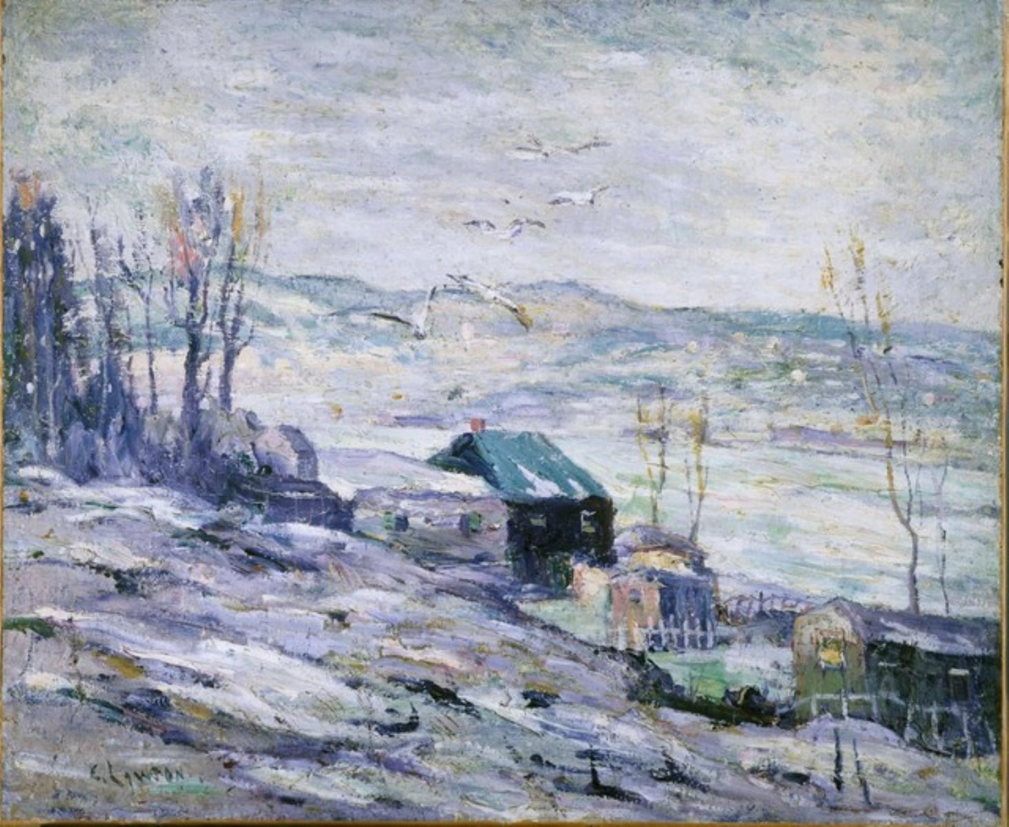 Artist: Ernest Lawson - Title: Bronx River - The Fugitive Slaves - Medium: Fine Art Giclee on Canvas - Image Size: Approximately 16.5 inches x 20 inches - Framed: Unframed on Unstretched Canvas - Biography: Ernest Lawson (March 22, 1873 - December 18, 1939) was a Canadian-American painter and a member of The Eight, a group of artists who formed a loose association in 1908 to protest the narrowness of taste and restrictive exhibition policies of the conservative, powerful National Academy of Design. Though Lawson was primarily a landscape painter, he also painted a small number of realistic urban scenes. His painting style is heavily influenced by the art of John Henry Twachtman, J. Alden Weir, and Alfred Sisley. Though considered an American Impressionist, Lawson falls stylistically between Impressionism and realism.
