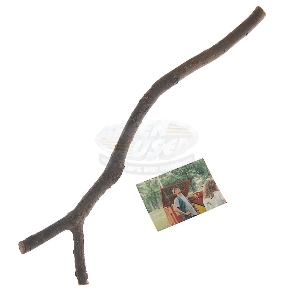 (Touchstone Pictures, 1991) This troll trap stick was custom-made by the production for use by Jim Varney as "Ernest". The uniquely shaped branch was used to set the troll trap by Ernest, measures 24" in length, with wear from use. Included with the stick is a continuity photo taken during filming that features both Jim Varney (Ernest) and the prop stick. Photo measures 3.5" x 5".