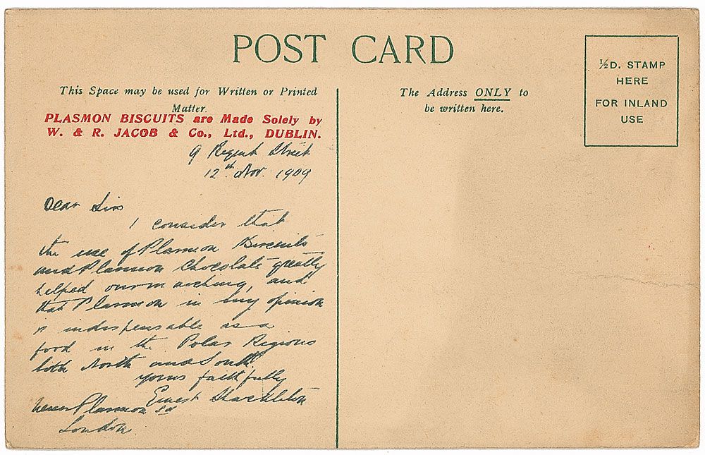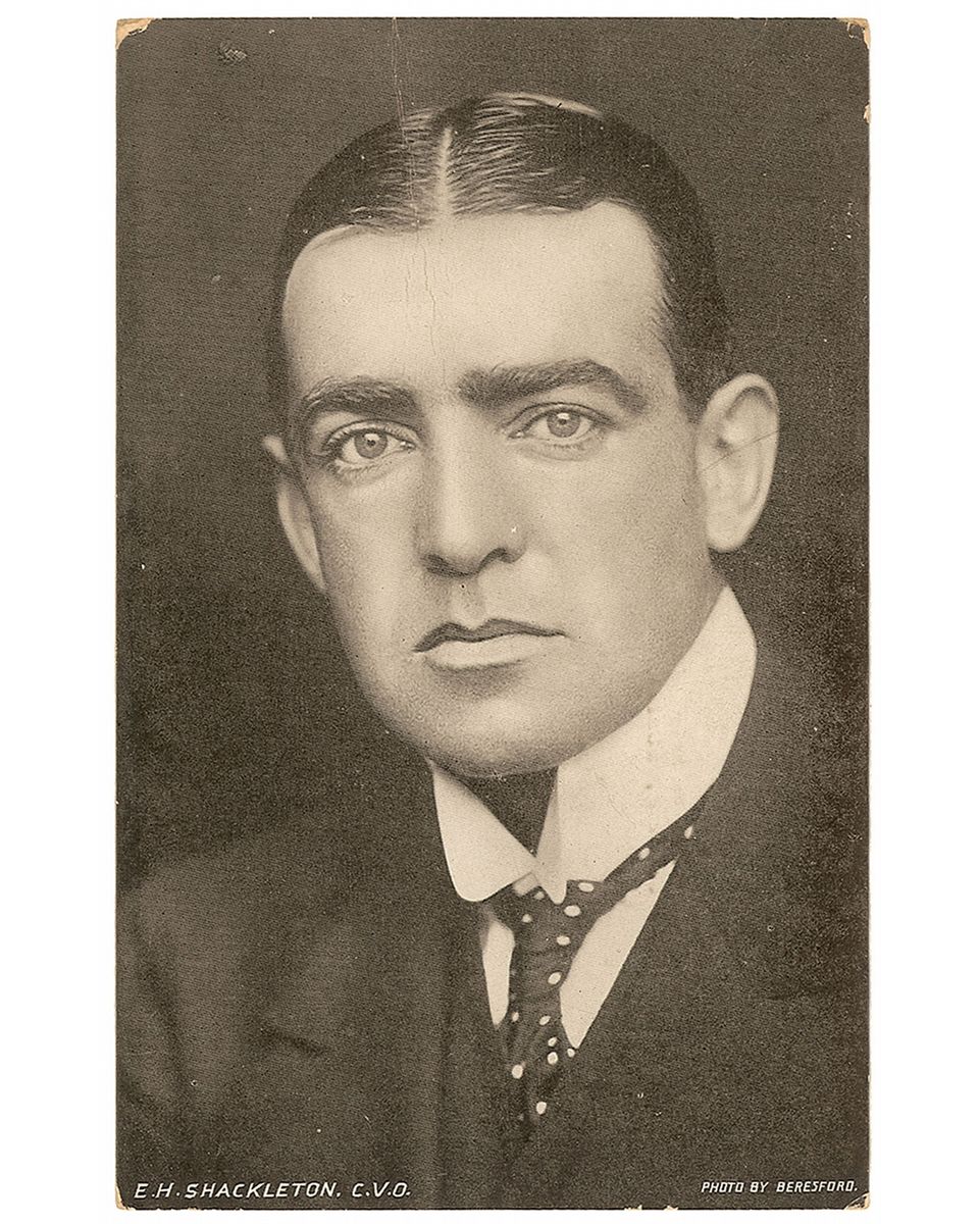 ANS signed “E. H. Shackleton,” one page, 6.5 x 3.75, January 5, 1914. Brief note of thanks written on the reverse of a partly-printed thank you note for a donation towards his Imperial Trans-Antarctic Expedition. The partly-printed note is signed by Secretary F. W. White, with Shackleton writing on the reverse, “Many thanks for yours and the kind wishes.” A central vertical fold passing through first initial of signature, and scattered light toning, a bit heavier to pre-printed side, otherwise fine condition.