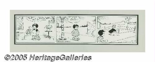 <B>Ernie Bushmiller - Nancy Daily Comic Strip Original Art, dated 12-23-41(United Feature Syndicate, 1941).</B></I> What do you get a guy named Sluggo for Christmas? -- Why, boxing gloves of course! Somehow Sluggo knew what he was about to get; he had already constructed a ring for his post-Christmas bouts! The image area of the daily measures 21.5" x 4.75", and the art is in Excellent condition. Join the ranks of the "Bushmiller Society" with a bid on this splendid <I>Nancy</B></I> daily!
