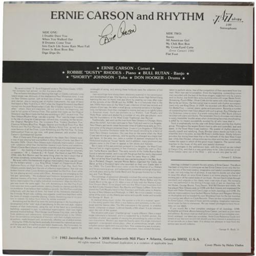 <B>Ernie Carson Autographed Record Group of 2.</B></I> "At the Hookers' Ball" autographed by Ernie Carson, Charlie Bornemann, and Herman Foretich, and "Ernie Carson and Rhythm" autographed by Ernie Carson. <I>From the Al White Jazz Autograph Archive.</B></I><BR><BR><b>Shipping:</b> Recordings (<a target="_blank" href="http://www.heritageauctions.com/common/shipping.php">view shipping information</a>)