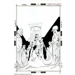 Ernie Chan and Dick Giordano - Original Cover Art for Detective Comics #450 (DC, 1975). You can't hold a candle to this cover of Batman getting doused with streams of hot melted wax in of all places, a wax museum. Slight yellowing around the outside edge of the art, still a great but gloopy conglomeration penciled by Ernie Chan and inked by Dick Giordano. Signed by Dick Giordano. 11 1/2" x 17 1/2". Important notice: We expect to be auctioning lots at the rate of 200-250 per hour. Sometimes eBay Premier live bid software cannot keep up with that pace, so we strongly recommend that you place a realistic proxy bid now as insurance to avoid disappointment. Also please note that all Heritage/CAA lots purchased through eBay Premier carry a 20% Buyer's Premium. Please make sure you read the Terms and Conditions.