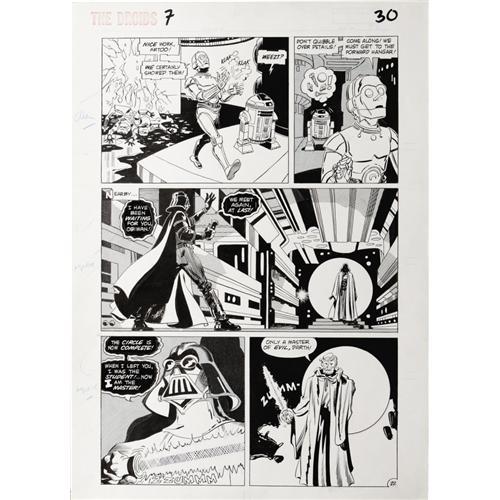 <B>Ernie Colon and Al Williamson - Droids #7, page 22 Original Art (Marvel, 1987).</B></I> "We meet again, at last!" Darth Vader faces his former master, Obi-Wan Kenobi, in the halls of the Death Star, in this forceful page from "Darth Vader's Vengeance," written by David Manak. The image area measures 12" x 18", and the condition is Excellent.<BR><BR><b>Shipping:</b> Large Flat (<a target="_blank" href="http://www.heritageauctions.com/common/shipping.php">view shipping information</a>)