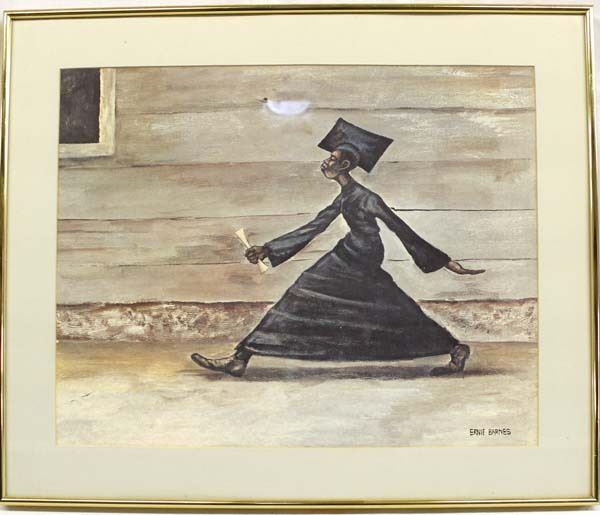 Ernie E. Barnes Framed Print ''The Graduate'', framed, matted and under glass, visual measures 19'' x 15.25'', overall measurement of 20'' x 24''