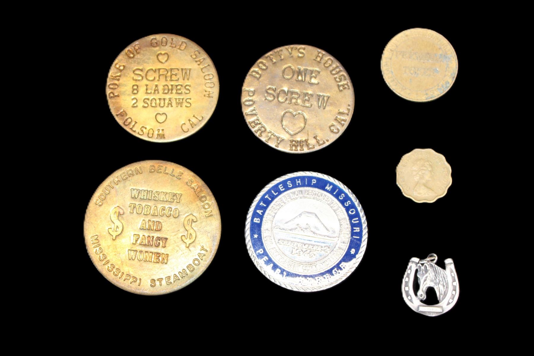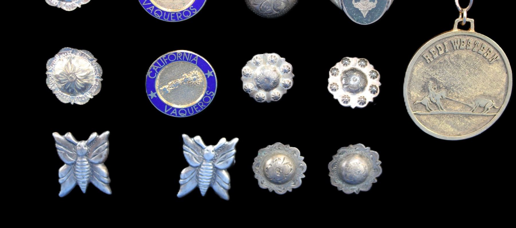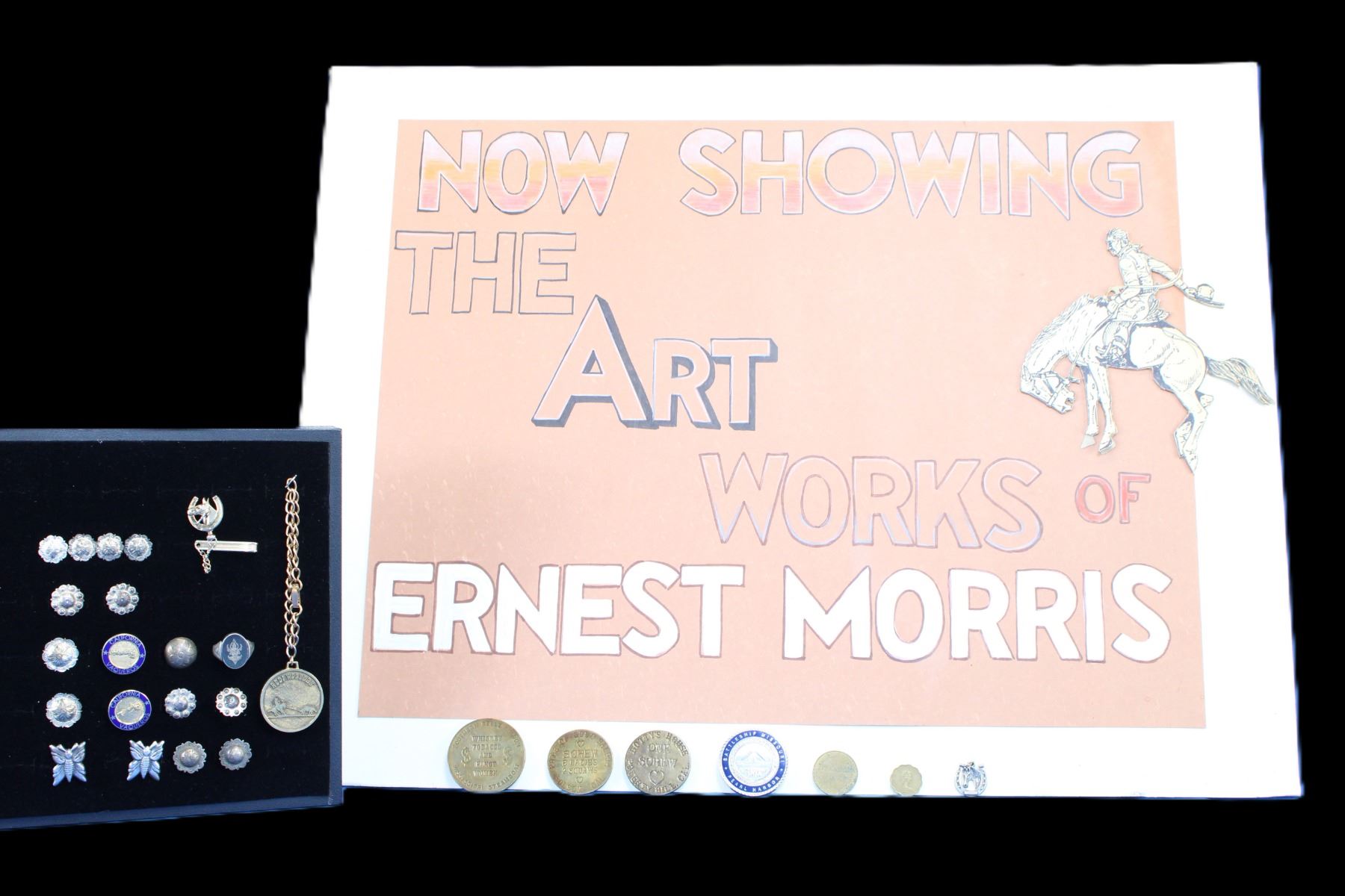 Ernie Morris Artworks Cardboard Sign- Small Conchos- Jewelry Charms- Tokens- Coins- Ring- Small Chicago Screw Conchos