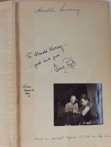 Accompanying the book is a compelling photo that showcases Ernie Pyle alongside the individual to whom he personally signed the book. This photograph offers a glimpse into the personal connection between Pyle and those whose lives he chronicled, capturing the camaraderie and shared experiences that forged strong bonds amidst the chaos of war.