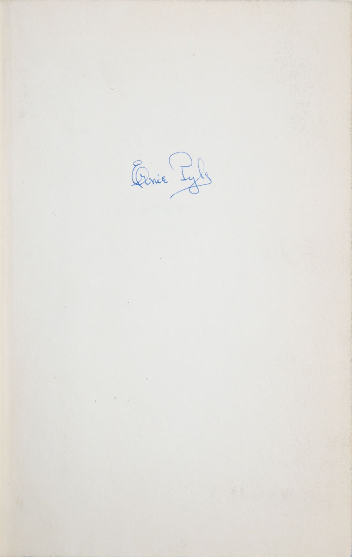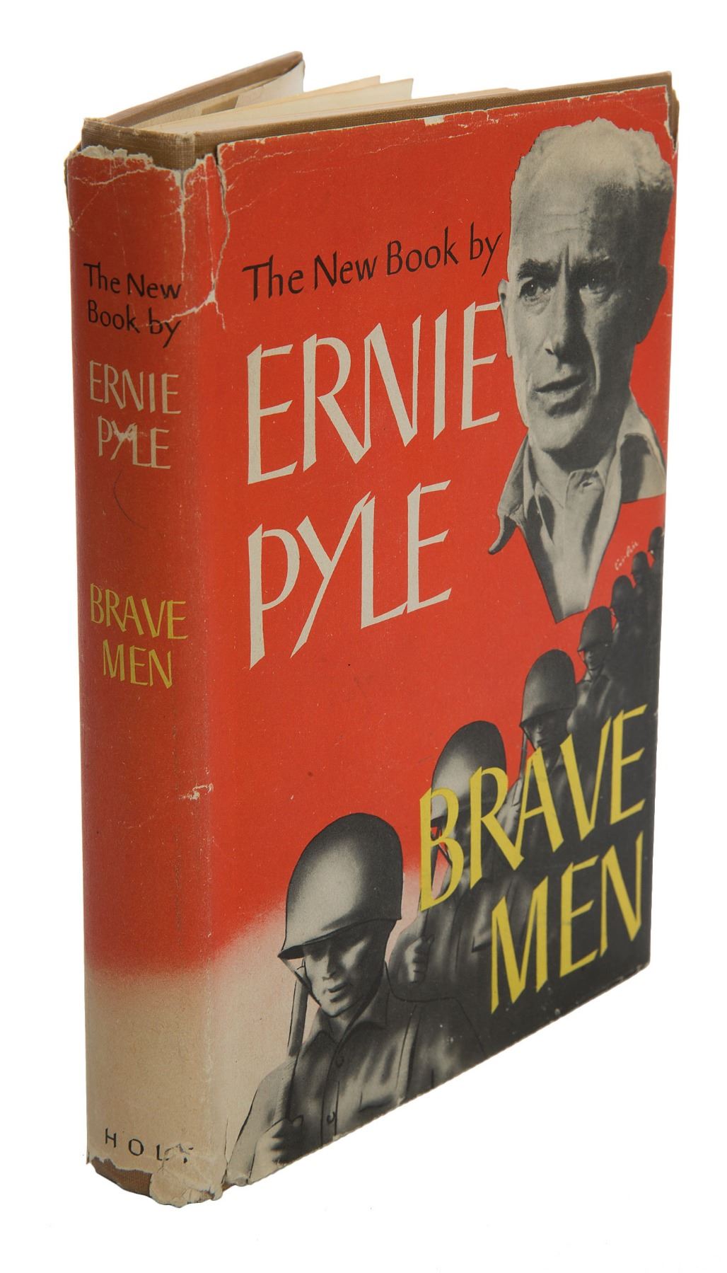 Signed book: Brave Men. Fourth printing before publication. NY: Henry Holt and Company, 1944. Hardcover with dust jacket, 5.75 x 8.5, 328 pages. Signed on the first free end page in fountain pen by Pyle. In fine condition, with tears and paper loss to the dust jacket.