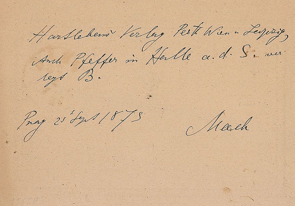Austrian physicist and philosopher (1838–1916) who, as a result of his research into the effects of supersonic velocity, lent his name to the ratio of the speed of a projectile to the speed of sound, aka the Mach number. Though Einstein would later credit him as the forerunner of the Theory of Relativity, Mach ultimately rejected Einstein’s theory. ALS in German, signed “Mach,” one page on a 4.75 x 3.25 postcard, September 25, 1875. Untranslated note sent to a gentleman in the Penzing borough of Vienna. Mild show-through from postmark stamp and slight surface loss affecting the recipient’s name in the address, otherwise fine condition.