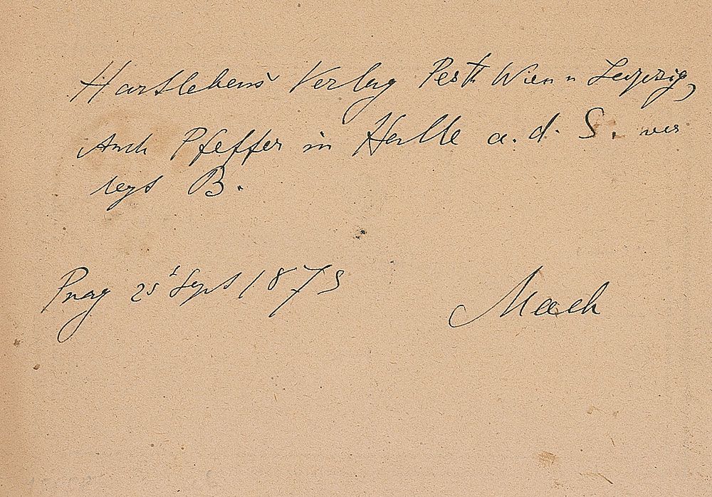 Austrian physicist and philosopher (1838–1916) who, as a result of his research into the effects of supersonic velocity, lent his name to the ratio of the speed of a projectile to the speed of sound, aka the Mach number. Though Einstein would later credit him as the forerunner of the Theory of Relativity, Mach ultimately rejected Einstein’s theory. ALS in German, signed “Mach,” one page on a 4.75 x 3.25 postcard, September 25, 1875. Untranslated note sent to a gentleman in the Penzing borough of Vienna. Mild show-through from postmark stamp and slight surface loss affecting the recipient’s name in the address, otherwise fine condition.