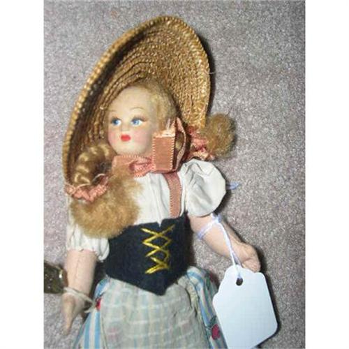 This is a doll that was made by the Eros Company in Italy. She has her gold tag thats says Made in Italy, Original Eros Florence. She reminds you of the more expensive Lenci dolls. She has a dark blonde light brown mohair wig that is in braids and she has a big brim straw hat. The cotton print skirt is adorable but the apron has holes in it. I'd be tempted to just cut it away as the rest of the doll is great. She has an attached slip and panties. She has a pressed mask face and head. She has painted right side-glancing eye with white dot on the left side of the pupil. There is sewing machine seam in front and back of legs and arms. There is no ankle seam. She has redfelt shoes with cardboard stitched soles. She has mitt hands with separate thumb and stitching indicates fingers. She has thick brown eyelashes. She has no eyeshadow. She has no bad ordor. She is from a smoke free environment. If you can love her, please bid. Buyer to pay $10 for U.S. shipping, insurance, and handling. Thanks for viewing.