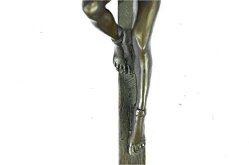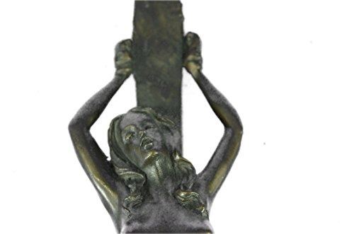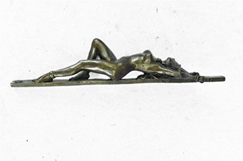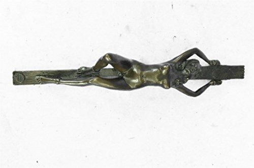 This erotic woman rest atop a long wooden stick tide up from the wrist and one leg, she lays there helpless and nude, but her astonishing and gorgeous beauty cant help but want to keep staring. Perfect for your desk, or at a Dinner Party, or maybe, a special treat, just for yourself! A stunning creation with exquisite detail cast by the traditional lost wax. Bronze Dimensions: Height 11 X Width 3 inches. Weight: 4 LBS. Inventory: 53ST0262435
