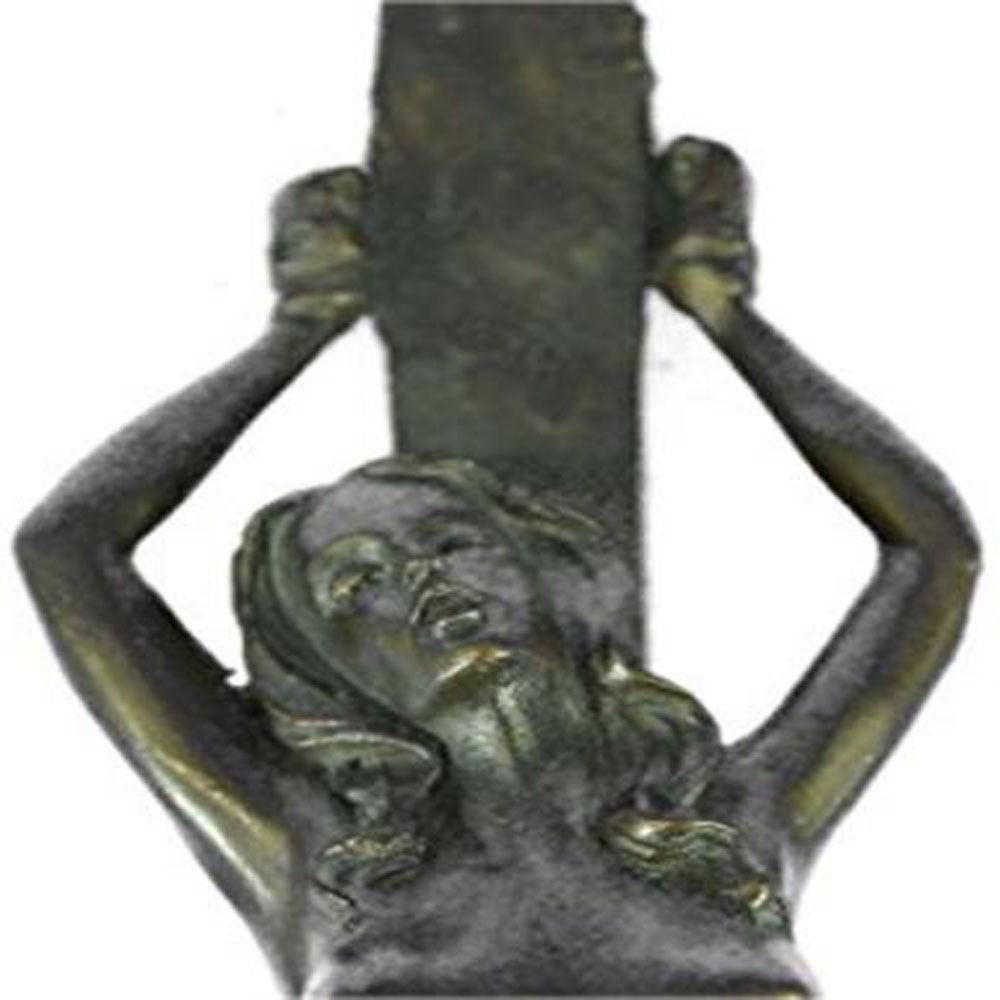 This erotic woman rest atop a long wooden stick tied up from the wrist and one leg, she lays there helpless and nude, but her astonishing and gorgeous beauty can not help but want to keep staring. Perfect for your desk, or at a Dinner Party, or maybe, a special treat, just for yourself! A stunning creation with exquisite detail cast by the traditional lost wax or hot cast method is not to be confused with cheap imitations. Dimensions: Height 11 X Width 3 Inches. Weight: 4 LBS.
