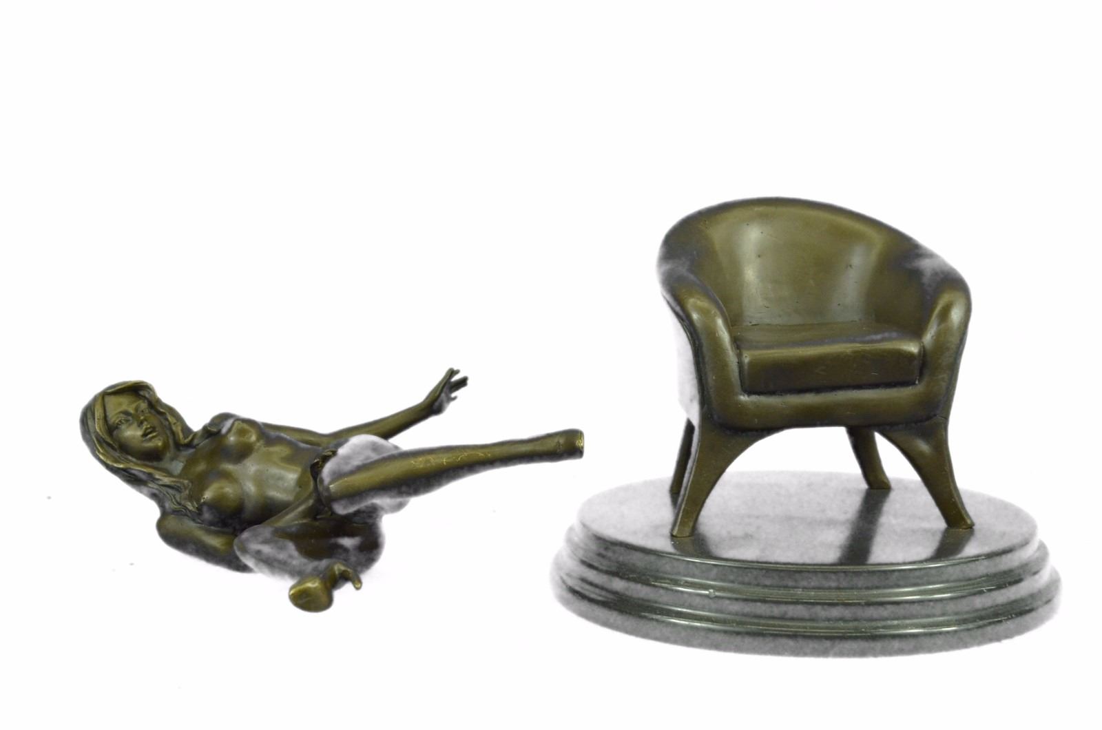 She sits side saddled on a sofa as the wind blows through her hair. She wears nothing and completely naked. Her breasts are exposed and her nipples are hard and pointy letting you know she is defiantly excited. This sculpture was cast using the Lost Wax Method and has a two toned brown patina and is 100% Bronze. Bronze Dimensions with Marble Base: Height 10 X Width 9 inches. Weight: 10 LBS. Inventory: 35ST0826356