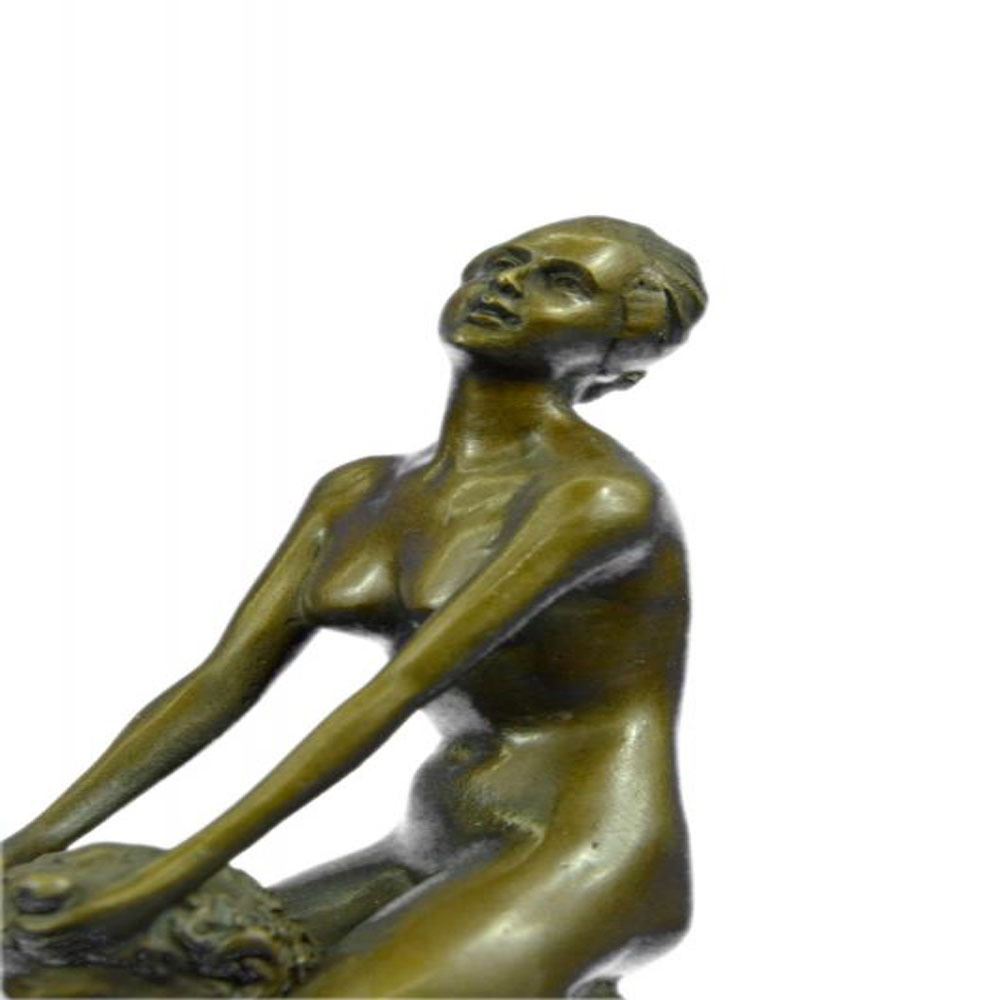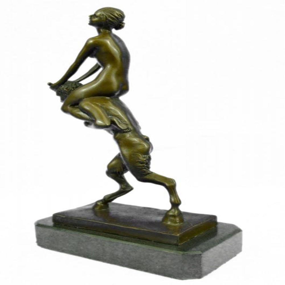 What a splendid figure of Bronze. Very nice Art Deco Vienna Bronze Satyr with a nude nymph, sitting on his shoulders. This Sculpture is affixed on finest marble and the Sculpture shows a young faun with a sweet little nymph on his shoulders. Placed on a well shaped marble base the figure is a great showpiece for friends of Art Deco and Vienna Bronzes. It is a true detailed Bronze cast and focal point in every exhibition. An absolute eyecatcher for friends of Bronze Sculptures, Art Deco or Vienna Bronze collectors and fans of satyr Bronze figures. Bronze Dimensions with Marble Base: Height 11 X Width 5 inches. Weight: 5 LBS.