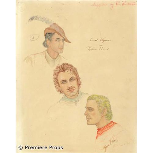 These are hand-drawn renditions of the great Errol Flynn in his classic role as Robin Hood, as suggested by Perc Westmore and signed by artist Paloma Gibson circa 1930's, size 11"x14", in color. Add this unique artwork passed down through the generations of The Westmore family of artists, to your collection today! (WSM2007)