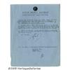 32A. A MEMORABILIA lot (Autographs, Sports Collectibles, or Music, Entertainment, Political, Americana and/or Pop Culture memorabilia) when the lot is accompanied by a Certificate of Authenticity, or its equivalent, from an independent third party authentication provider, has no right of return. Under extremely limited circumstances, not including authenticity (e.g. gross cataloging error), a purchaser, who did not bid from the floor, may request Auctioneer to void a sale. Such request for evaluation must be made in writing detailing the alleged gross error, and submission of the lot to the Auctioneer must be pre-approved by the Auctioneer. A bidder must notify the appropriate department head (check the inside front cover of the catalog or our website for a listing of department heads) in writing of the purchaser's request and such notice must be mailed within three (3) days of the mail bidder's receipt of the lot. Any lot that is to be evaluated for return must be received in our offices with 30 days. AFTER THAT 30 DAY PERIOD, NO LOT MAY BE RETURNED FOR ANY REASONS. Lots returned must be in the same condition as when sold and must include the Certificate of Authenticity, if any. No lots purchased by floor bidders may be returned (including those bidders acting as agents for others). Late remittance for purchases may be considered just cause to revoke all return privileges.