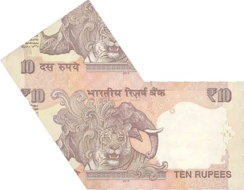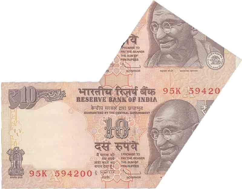 10 Rupees,Republic India,D Subbarau,No Inset,S.No. 95K, 594200, Error: Kite shape 10 Rupees, massiveprinting shifted error at right top with another note print attached to it,about UNC, Extremely Rare.