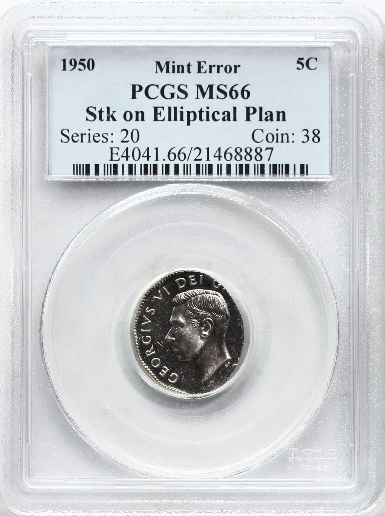 Error; 1950 5¢ "Stk on Elliptical Plan" PCGS Superb Gem Mint State-66. A very cool and error coin! Worth a premium bid.