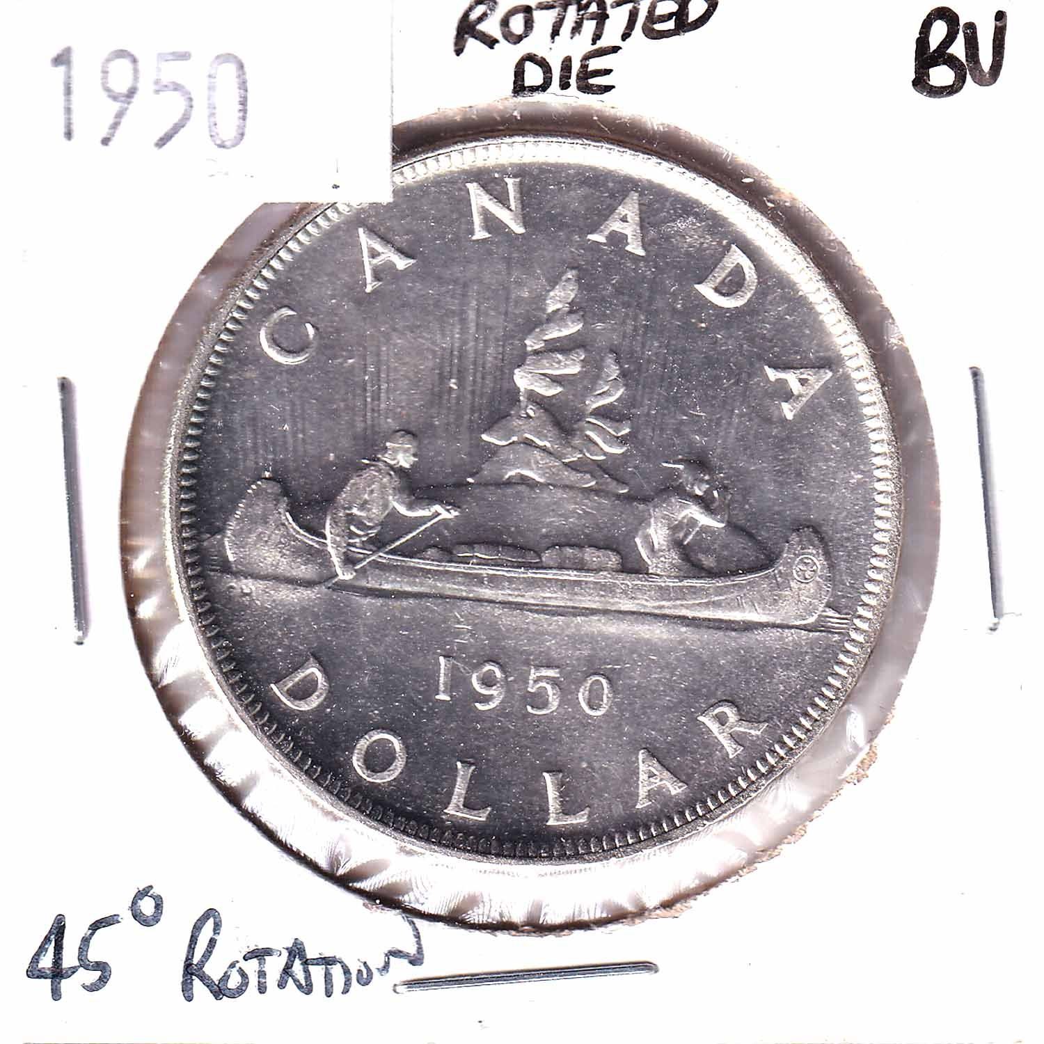 Error! 1950 Canada Silver $1 with a 45 Degree Rotated Die Brilliant Uncirculated.