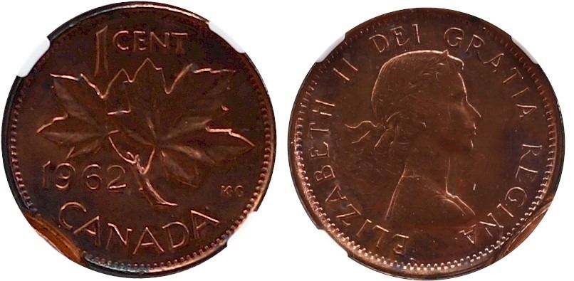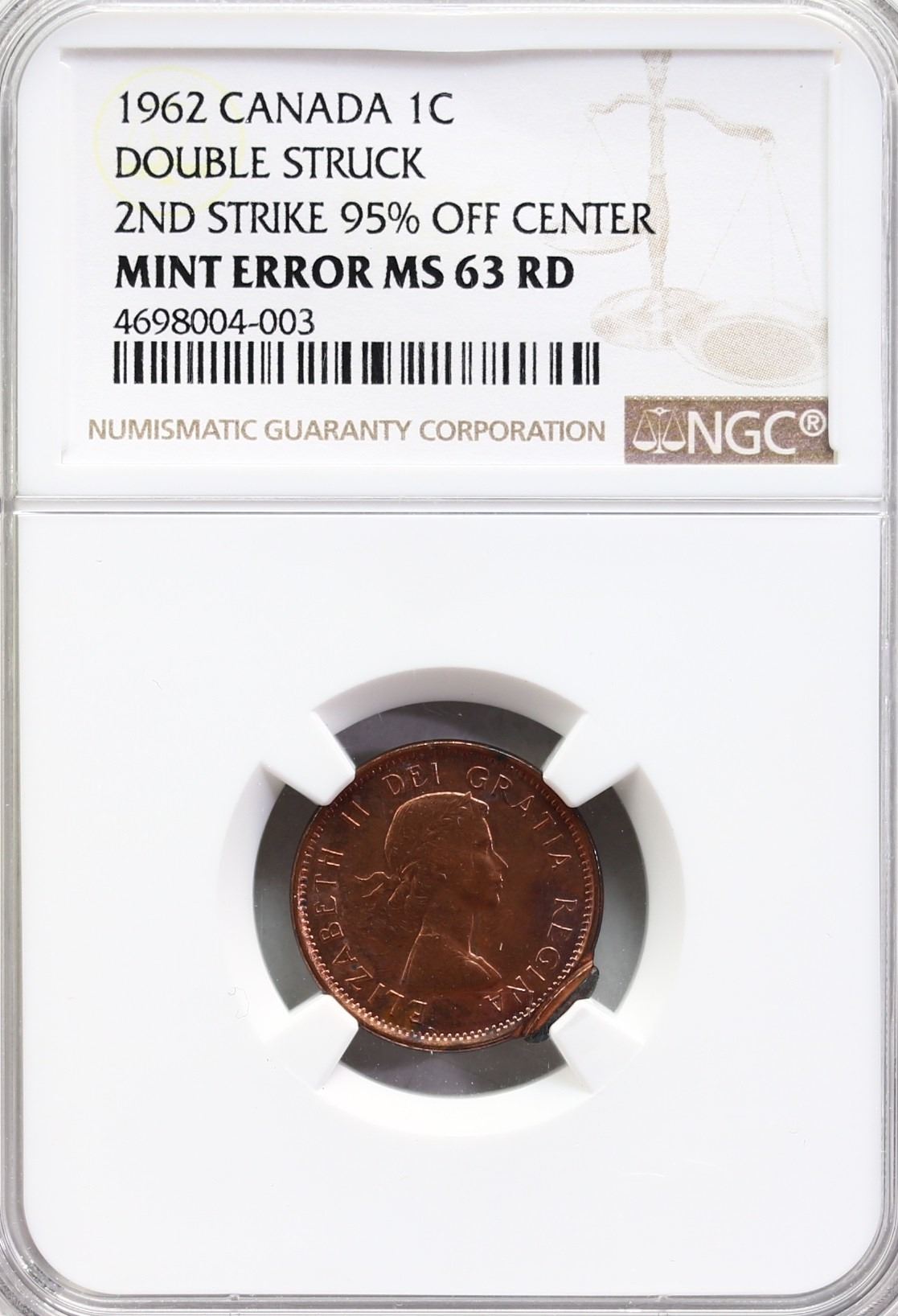 Error; 1962 1¢ NGC MS63RD. Designated as Double Struck 92nd Strike 95% Of Center). See Pic.