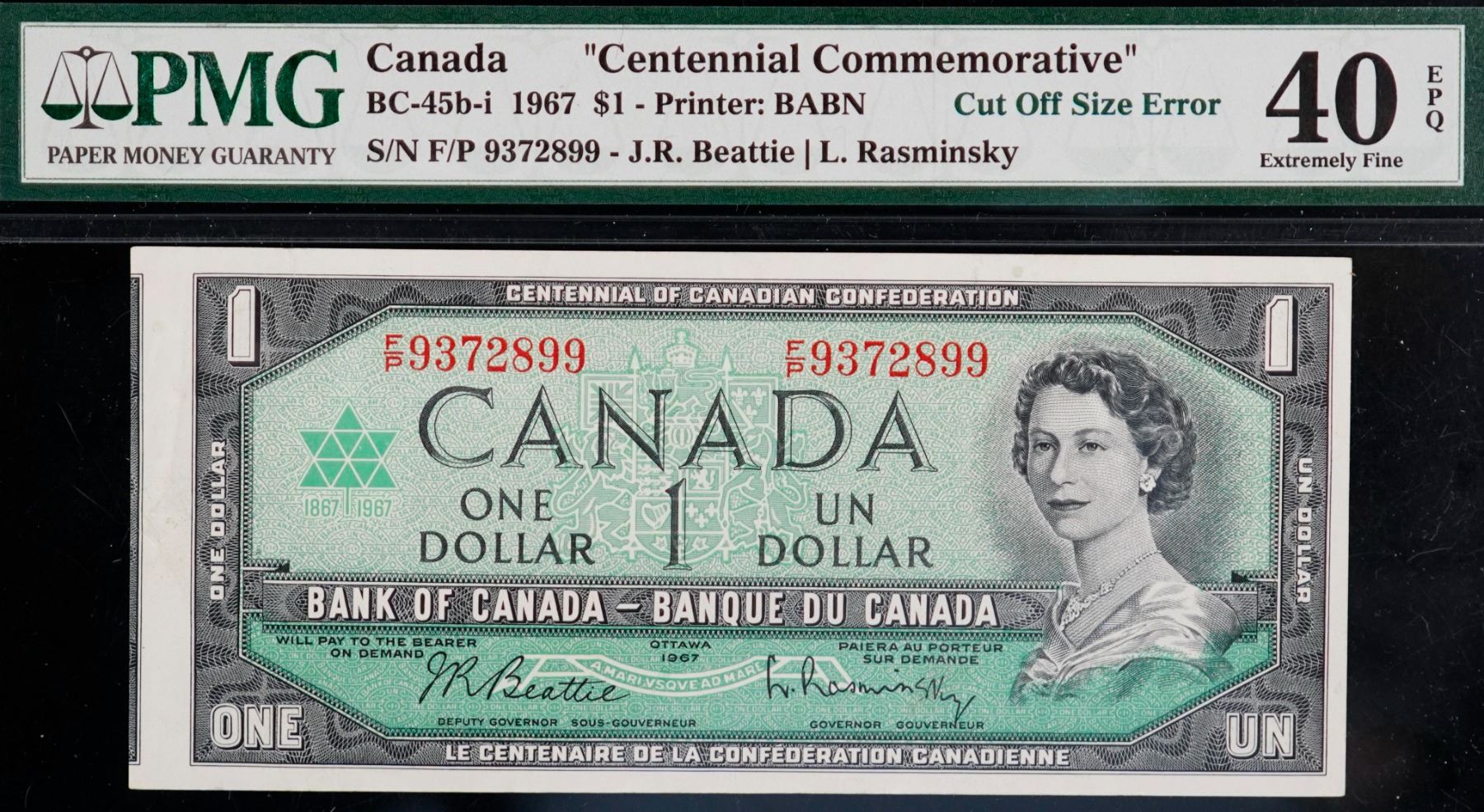 Error; 1967 $1 BC-45b-i #F/P9372899 PMG Extra Fine-40EPQ "Cutt off size error"