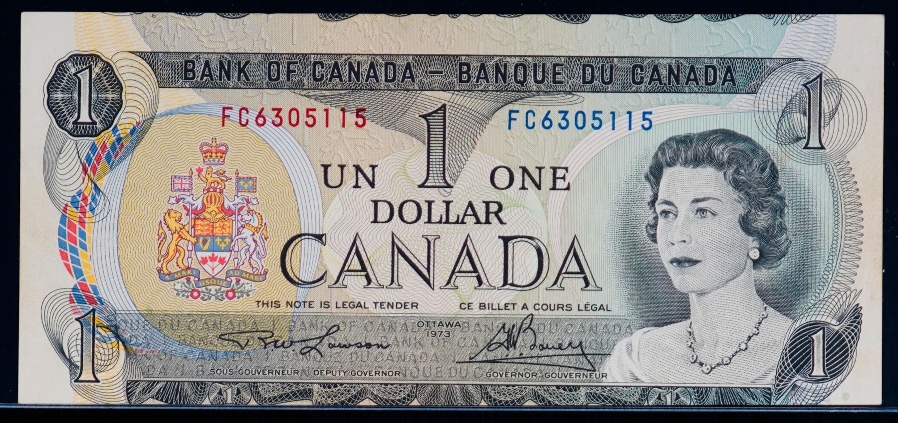 Error; 1973 $1 BC-46a #FC6305115 Extra-Fine. Cut out of register.