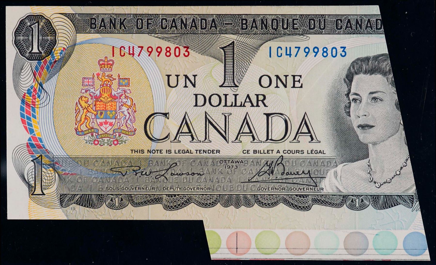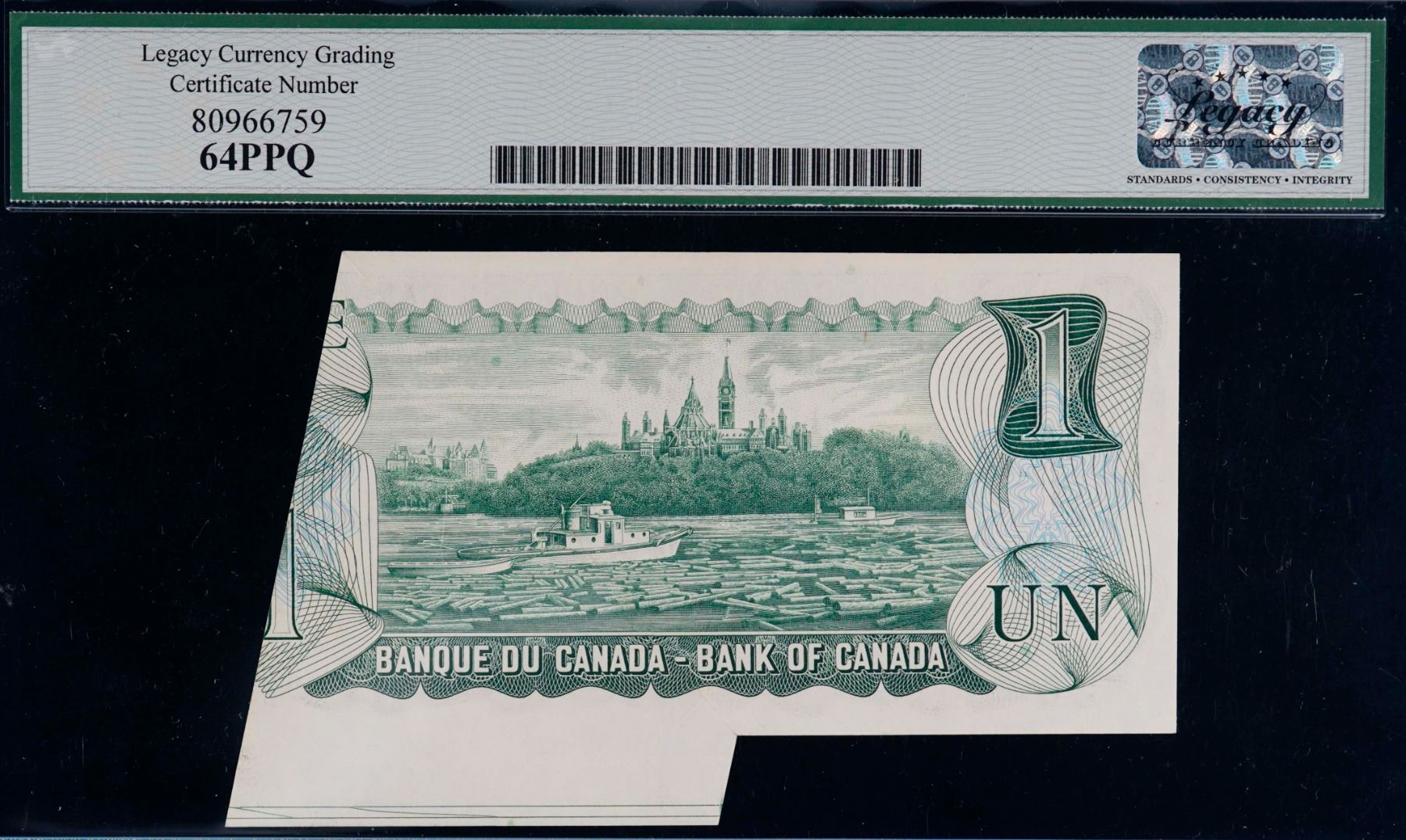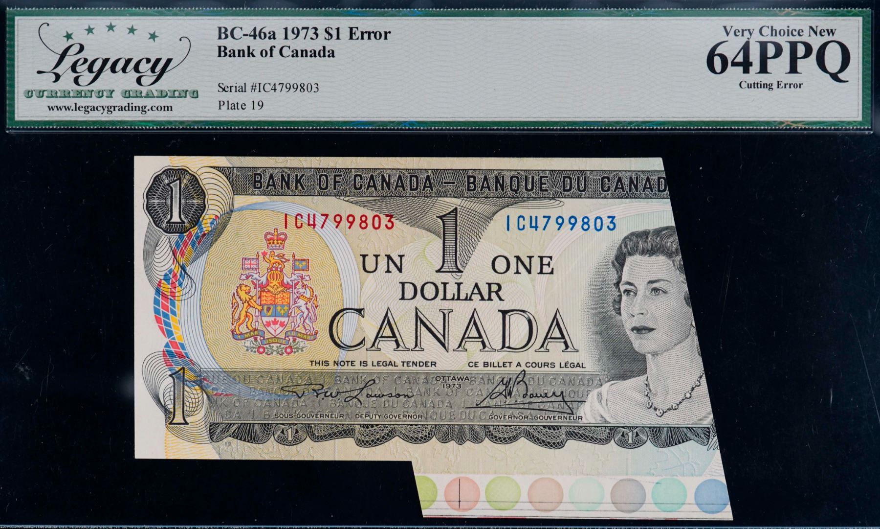 Error; 1973 $1 BC-46a #IC799803 Legacy Choice Uncirculated-64PPQ. Dramatic cutting error. Wow!
