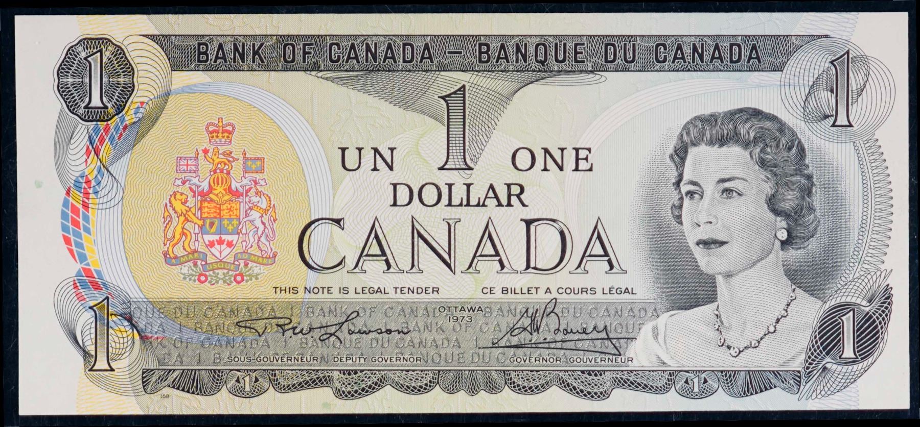 Error; 1973 $1 Legacy Choice Uncirculated-64PPQ - Dramatic error! Missing Serial Numbers. A very bright example with vibrant colours.