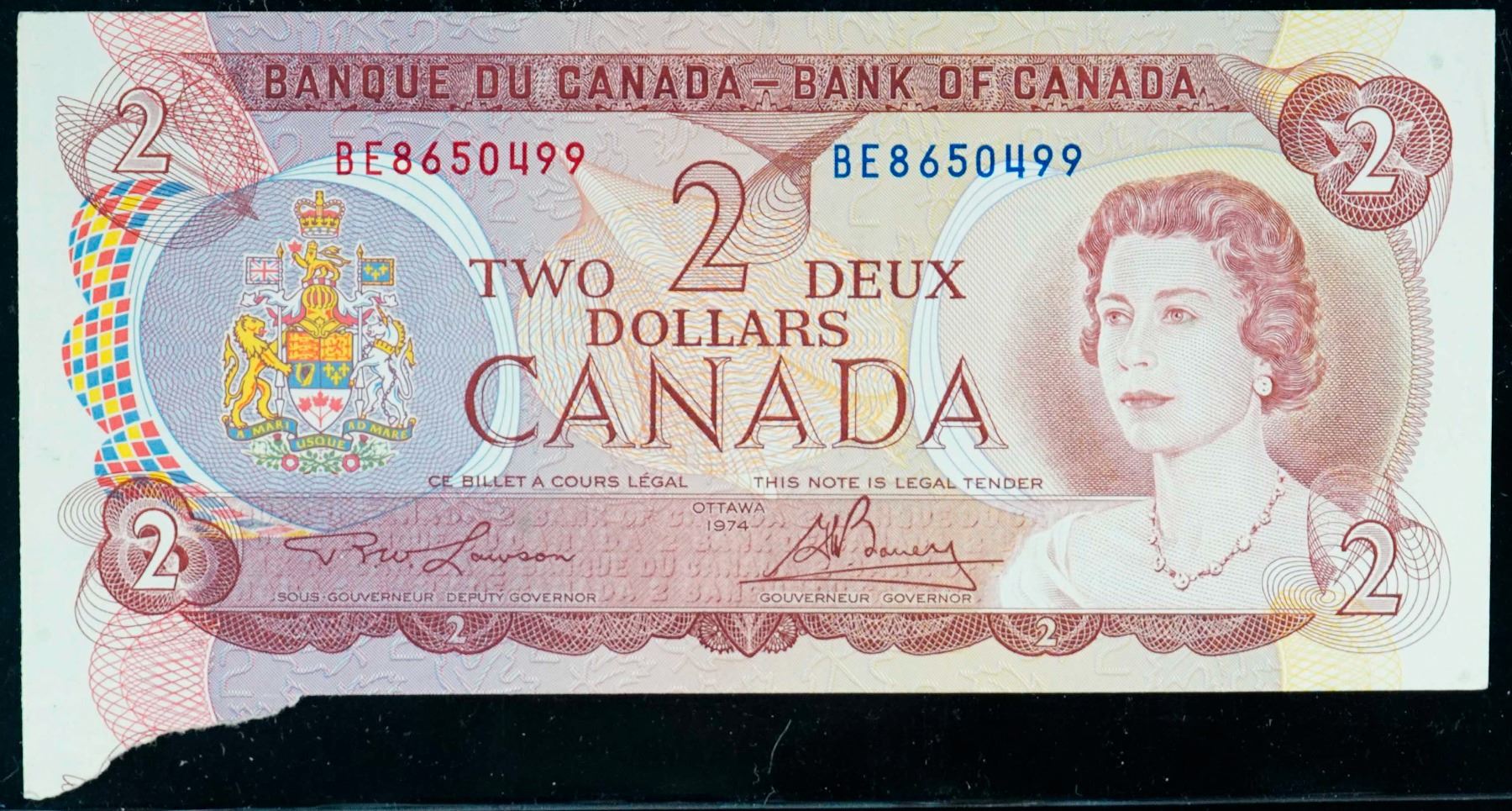 Error; 1974 $2 BC-47a #BE8650499 AU - " Extra piece attached at bottom left"