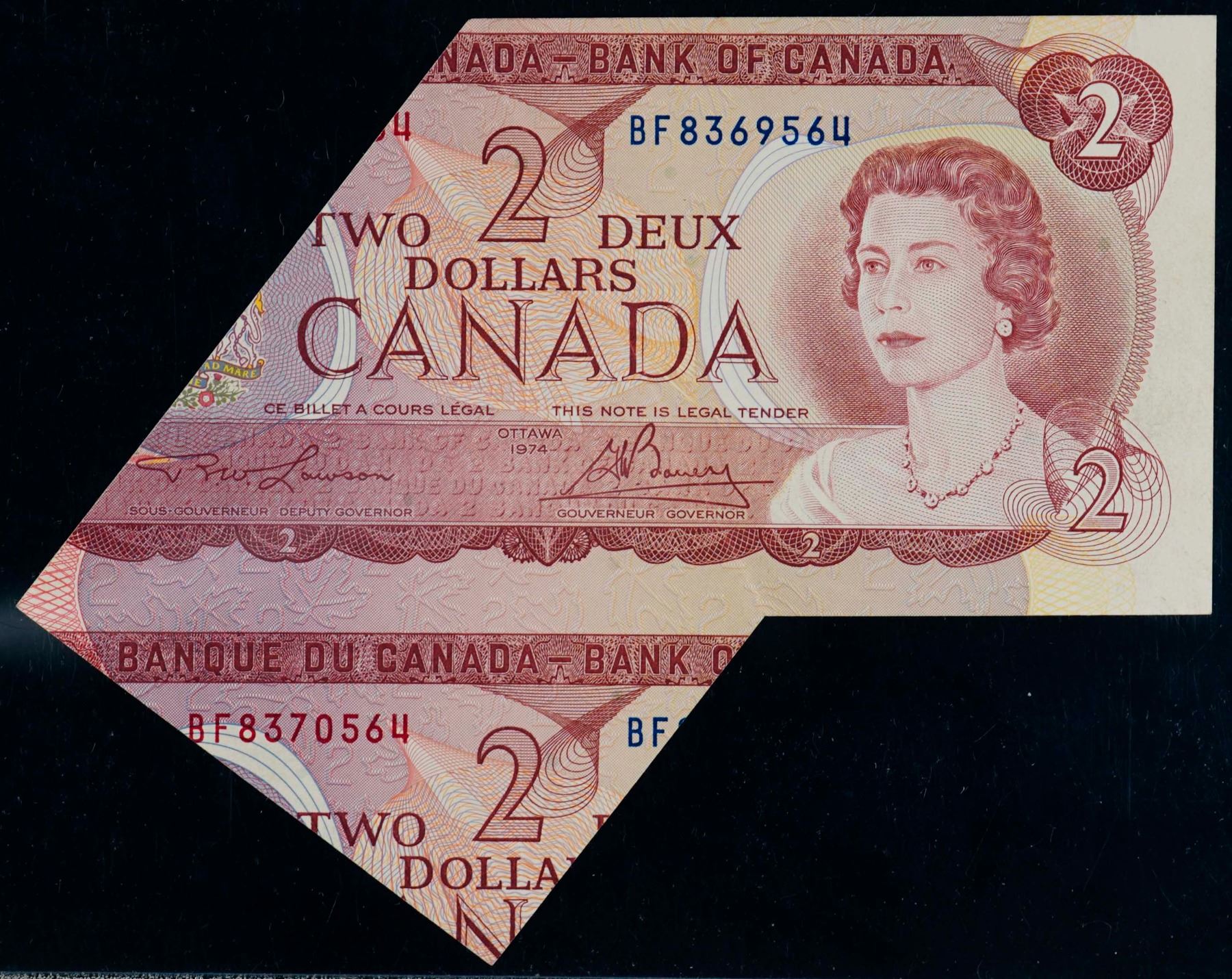 Error; 1974 $2 BC-47a #BF8369564 Legacy Choice Uncirculated-63PPQ. Dramatic cutting error. Wow!