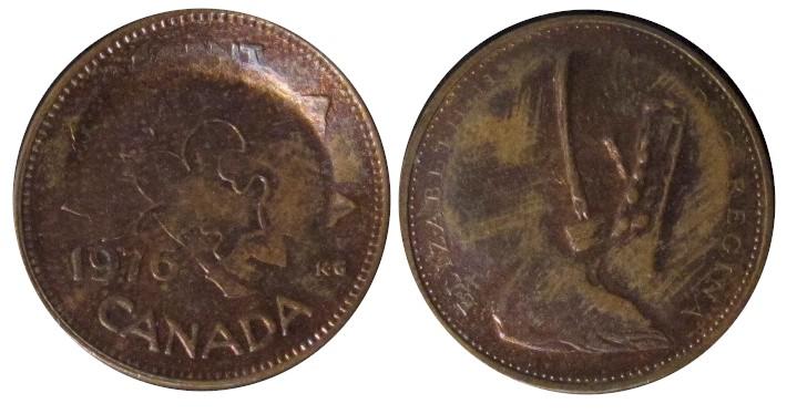 Error 1976 1¢ Foreign Planchet w/Overstrike of world coinage. Should be viewed. Quite impressive.