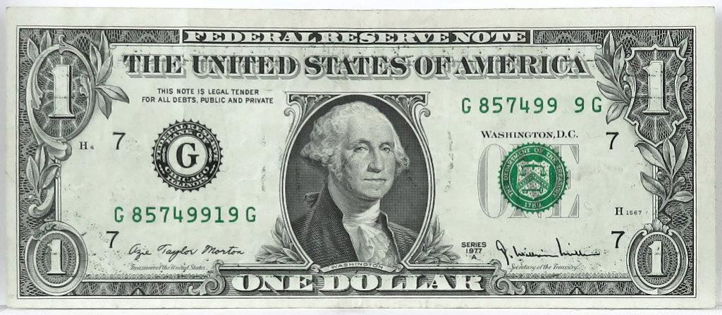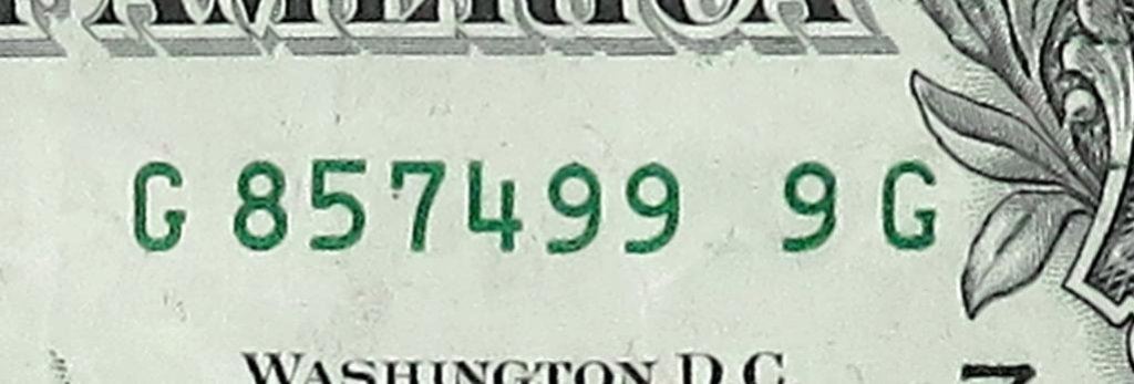 Error: 1977-A $1 Federal Reserve Note - missing digit serial #.