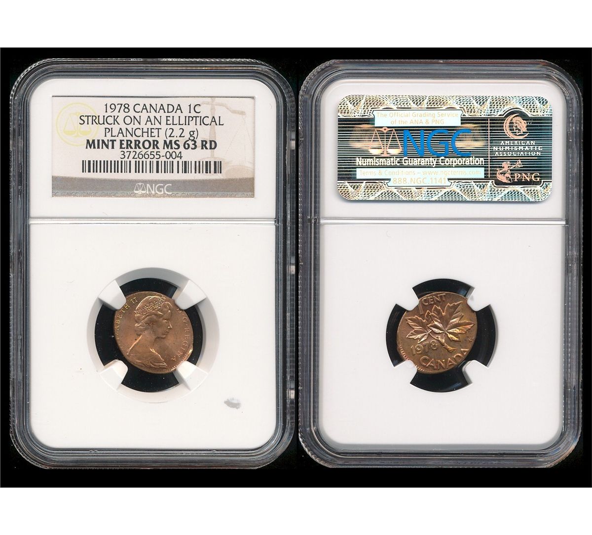 Error; 1978 1¢ NGC MS63RD. Struck on an elliptical planchet, 2,2gr.