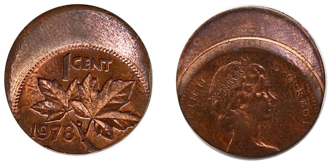 Error; 1978 1¢ "Off Centre" Choice Uncirculated with Red lustre.