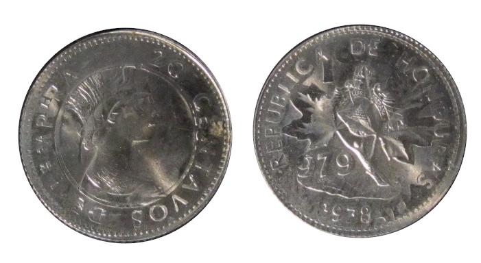 Error 1979 1¢. Struck on an Honduras 20¢. 2,2 gr BU.