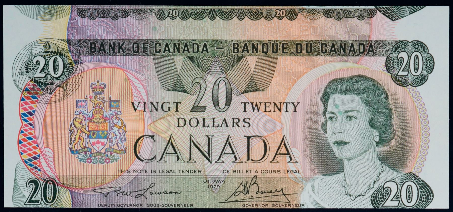 Error; 1979 $20 BC-54a #50138661534, Crisp AU Off Cut example.