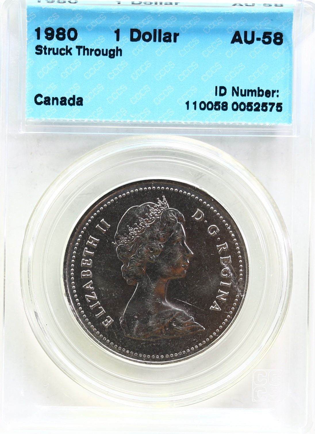 Error; 1980 $1 Nickel CCCS AU58. Designated as Struck Through. See Pic.