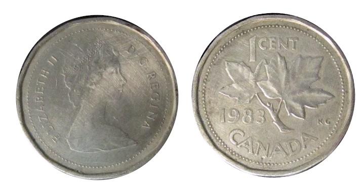 Error 1983 1¢ Foreign Planchet. 2,5 gr.