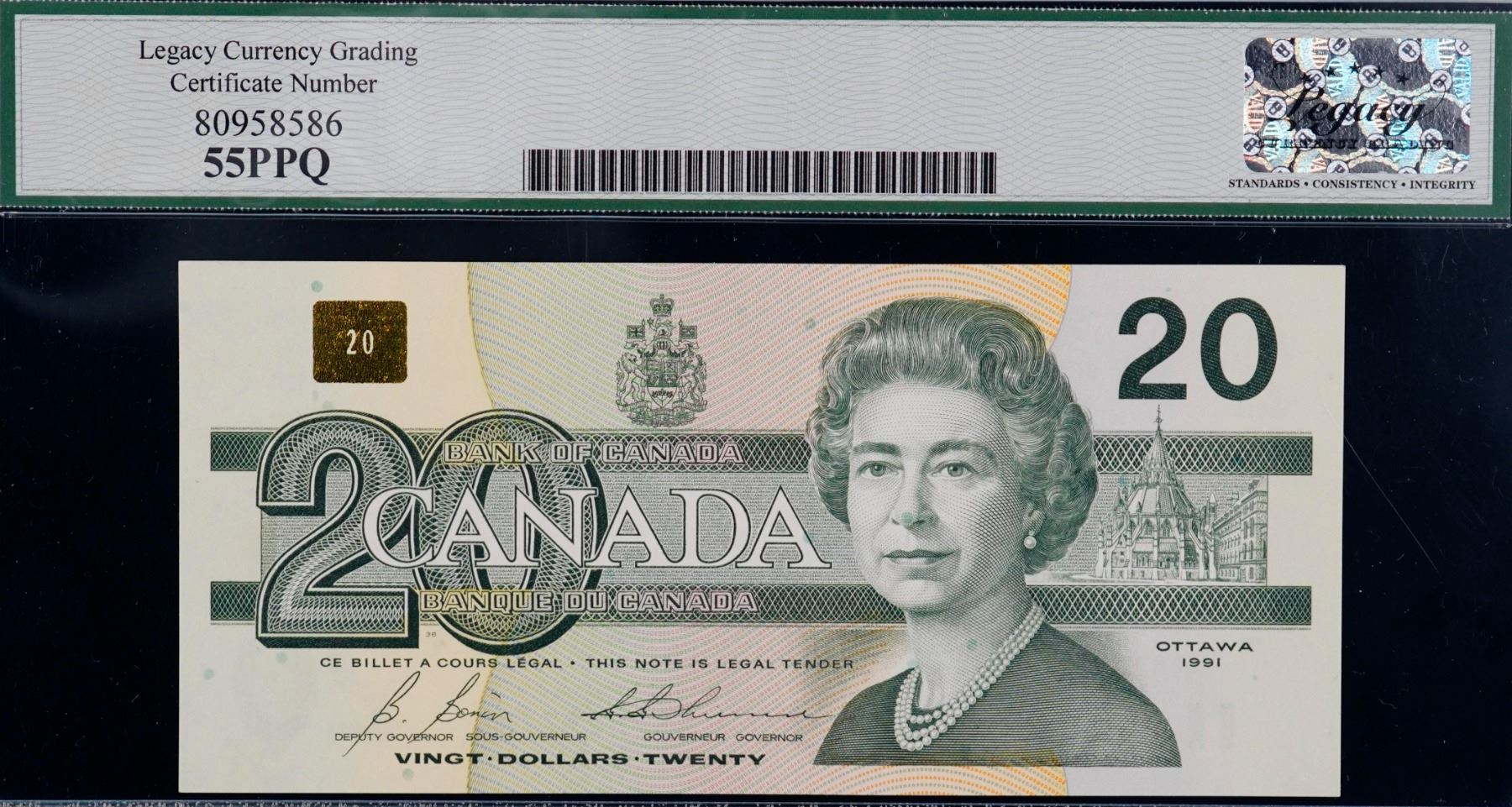 The cataloguer has taken every reasonable measure to ensure that all of the lots in this sale are as described and genuine. All raw coins and banknotes have been graded by the cataloger or the auction house which represent our best professional opinion. To grade coins and banknotes, we use Canadian grading standards, 42 years of experience and good conscience. However, grading is a subjective description in the opinion of the cataloger or the auction house. Among experts there are often differences of opinion on the grading and the eye appeal of a coin. The strike and the state of preservation are often debated. The Canadian Numismatic Company acts as an agent between consignors and buyers. The Canadian Numismatic Company does not guarantee that any coin or banknote cataloged will meet the standards, or the grade, of any third party grading companies. No warranty, whether impressed or implied. Items are as is, no warranty given. We cannot accept responsibility and waive all liability resulting in financial losses, and or incidentals accruing from the sale of any items, nor can we guarantee that items graded by third party services will grade the same if submitted to a different grading service or re-submitted to the same company. Statements by The Canadian Numismatic Company regarding the condition, the eye appeal, the strike and the population of items are for guidance only. All lots offered are sold "AS IS". Title to all lots remains with the auction house until paid for in full by the purchaser. But they are held at the risk of the purchaser once the time of the sale.