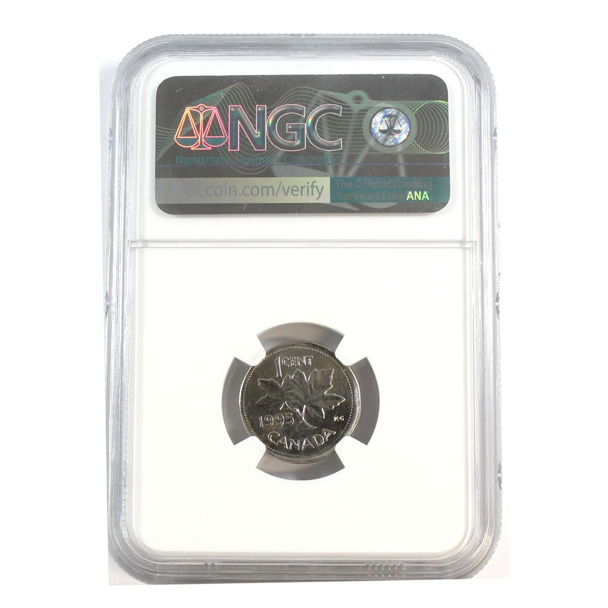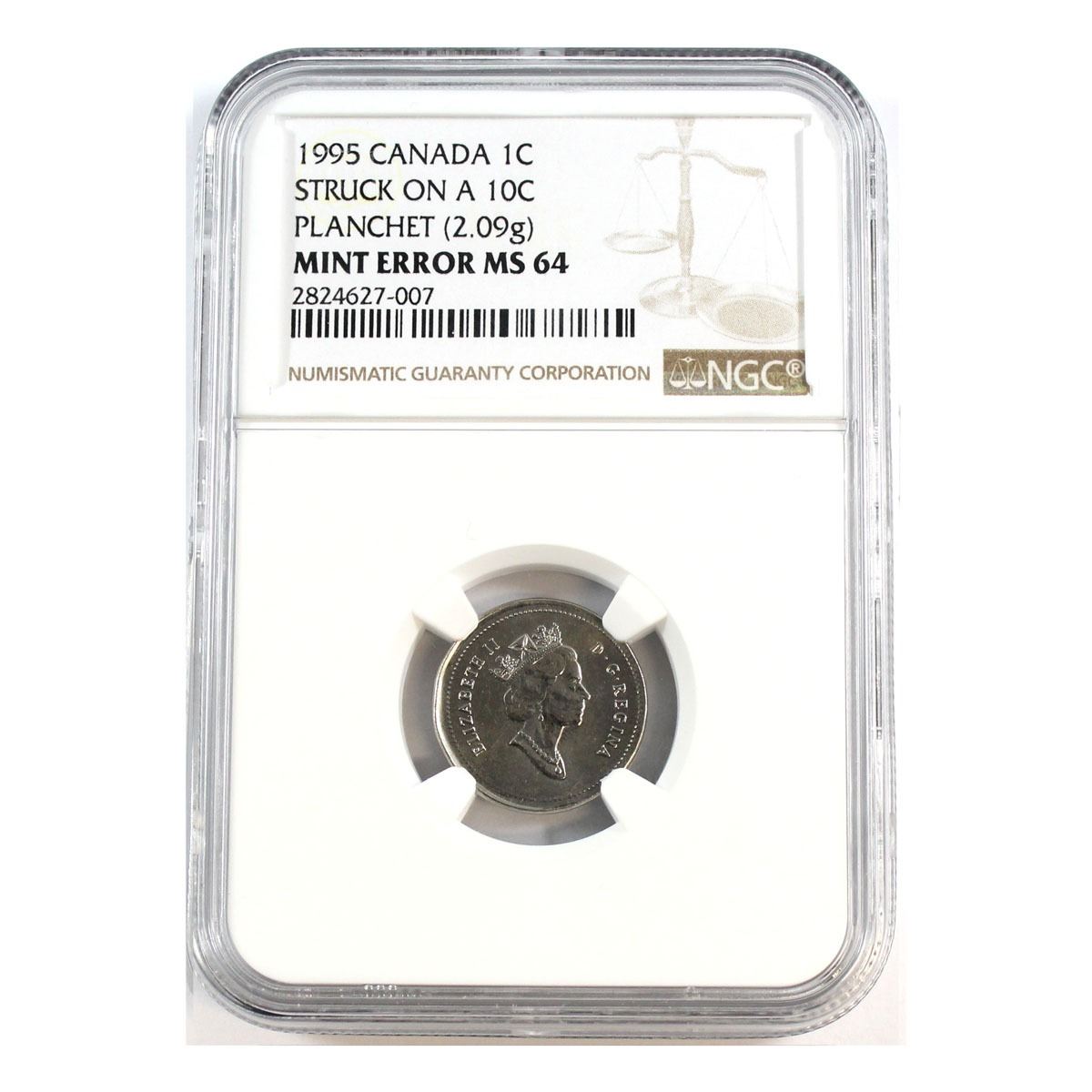 Error 1995 Canada 1-cent Struck on a 10-cent Planchet (2.09g) NGC Certified MS-64.