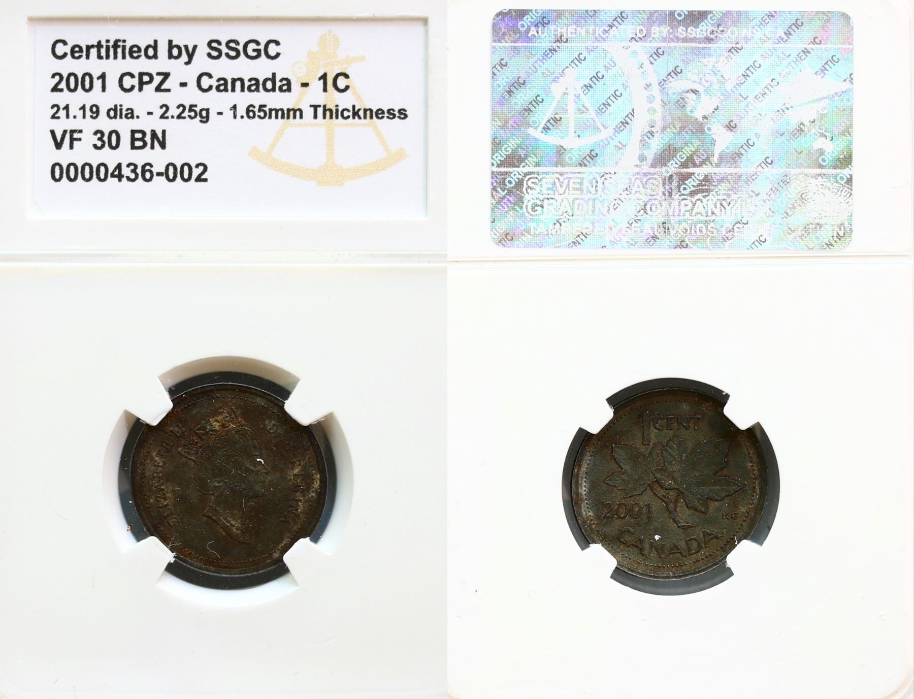 Error; 2001 1¢ SSGC VF30 - 21,19 dia, 2,25g, 1,65mm Thickness