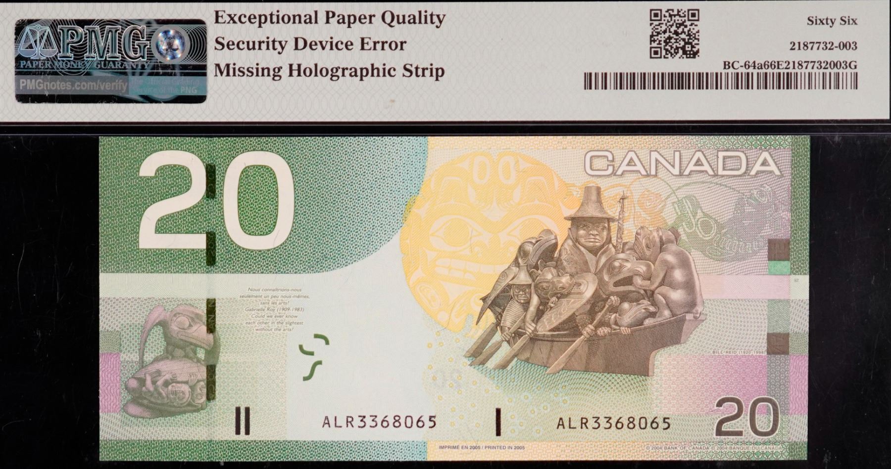 Error; 2004 $20 BC-64a ALR3368065 PMG Superb Gem Uncirculated-66EPQ "Missing Security Strip"