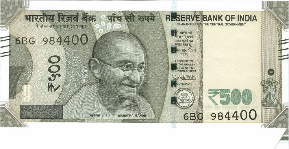 Error 500 Rupees Bank Note Signed By Urjit R Patel of 2016.