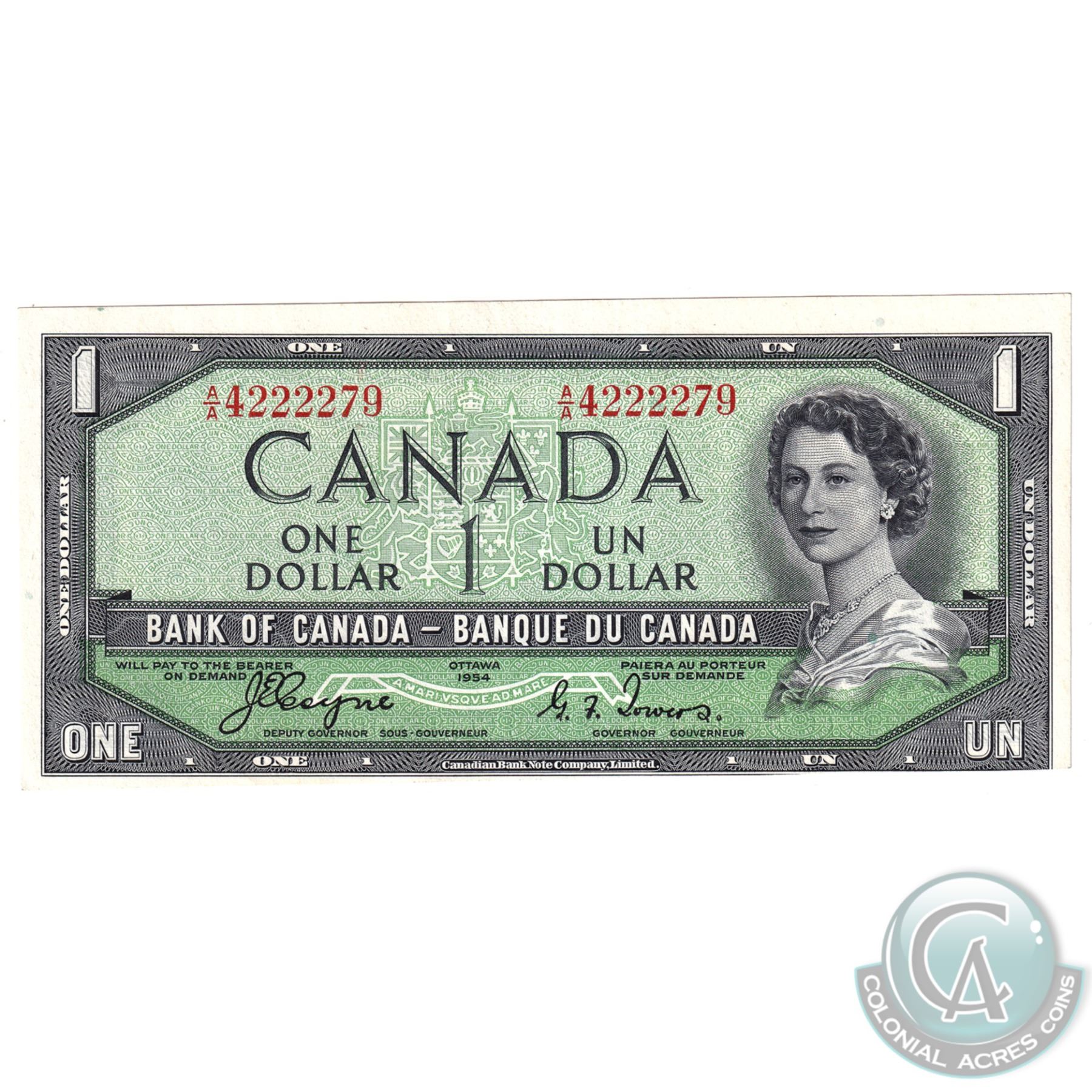 Error BC-29a Bank of Canada $1 Devil's Face Note S/N: 4222279 with Misaligned Printing - Major on Front, Minor on Back. AU+
