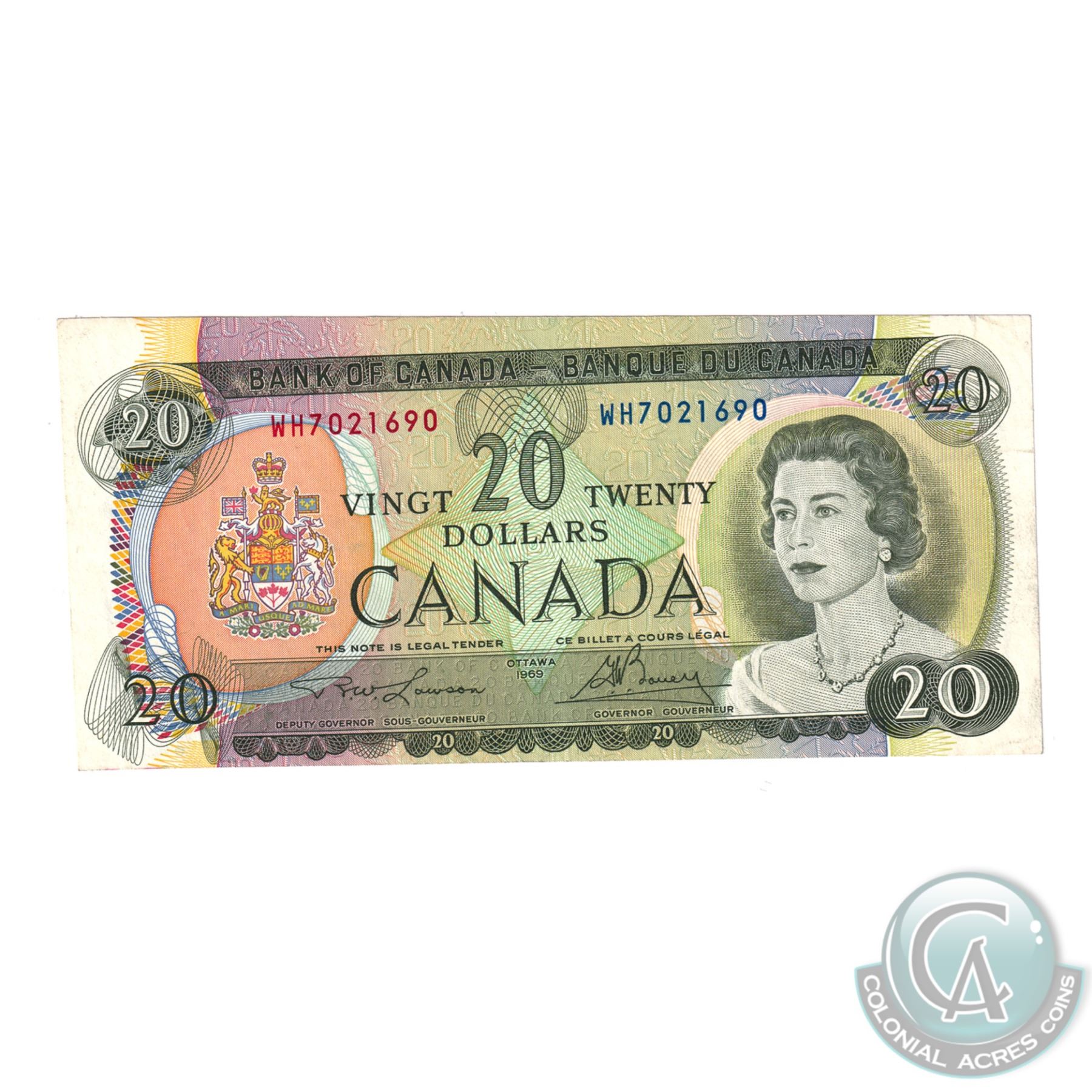Error BC-50b 1969 Bank of Canada $20 Note S/N: WH7021690 with Off Angle Mis-cut.