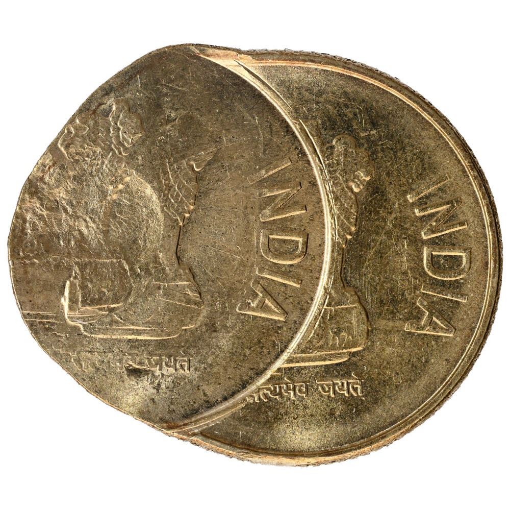 Republic India, Brass 5 Rupees,2016, Error: double struck on both side,6.0g, 27.56mm,about extremely fine.
