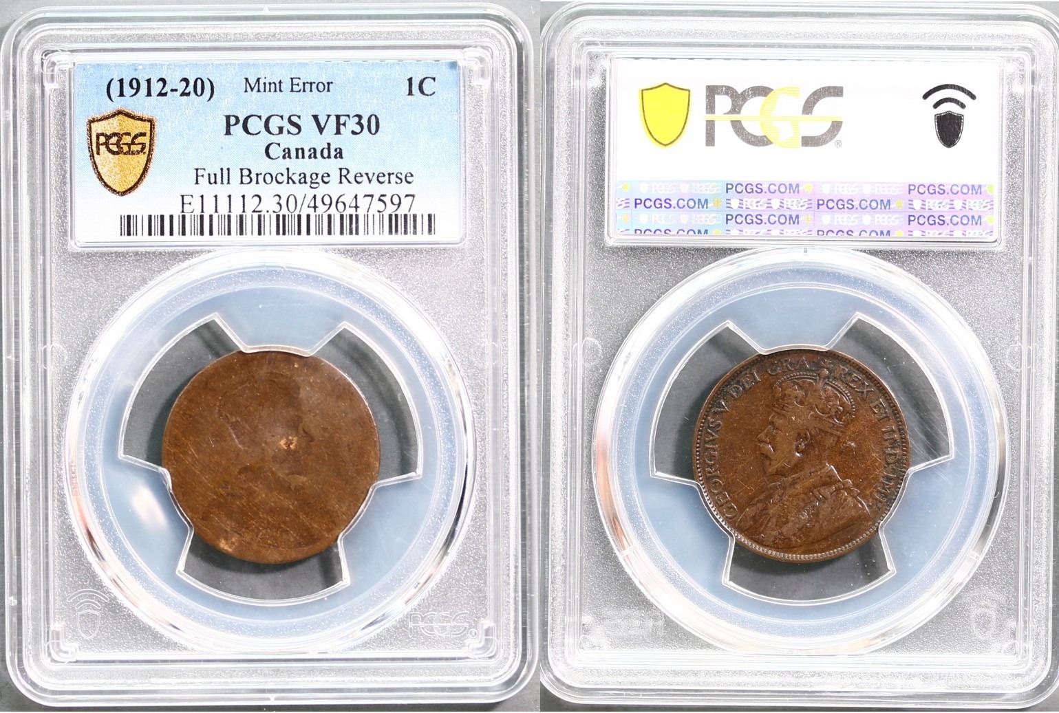 Error Coin;  ND (1912-20) 1¢ PCGS Choice Very Fine-30.  Designated w/Full Brockage Reverse.  Visually cool example.
