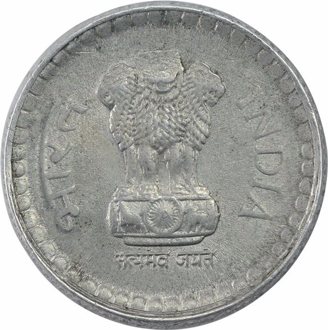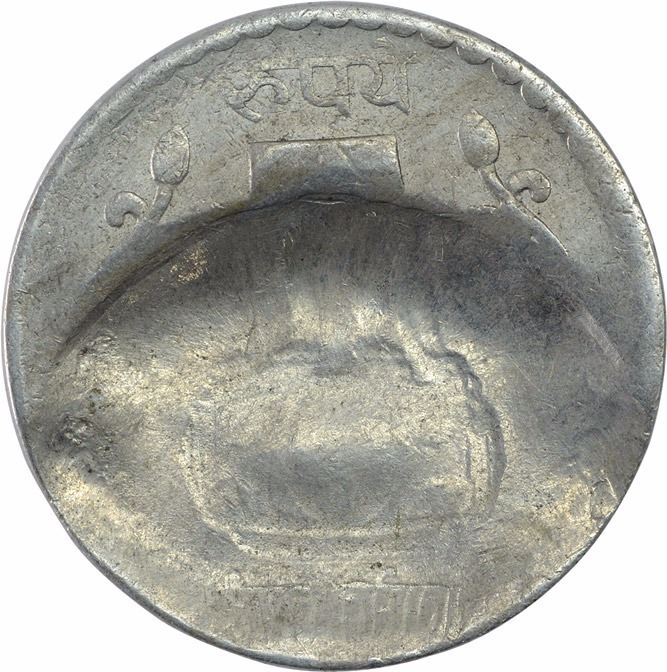 Republic India, Copper Nickel 5 Rupees,Error:Partial brockage of reverse on obverse with larger impressions, 8.99g, 23.25mm, about extremely fine, Rare.