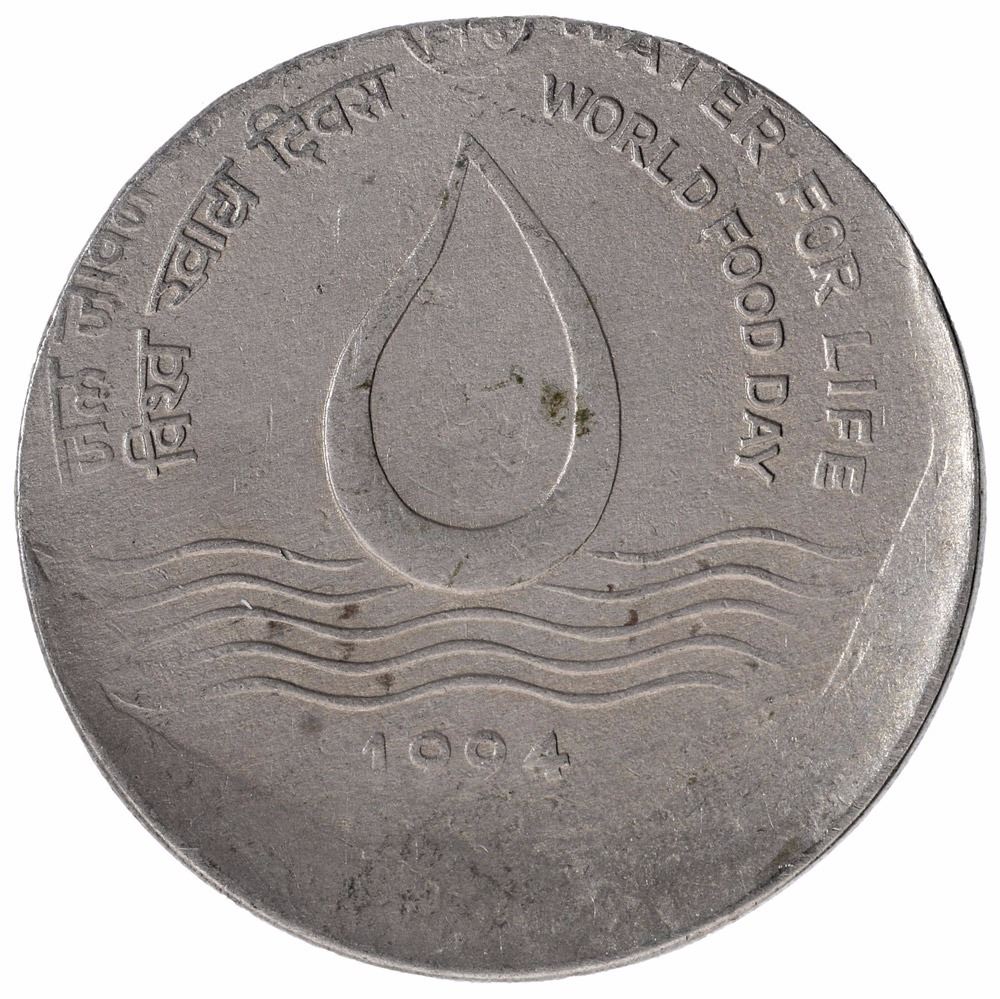 Republic India, Cupro Nickel 2 Rupees, 1994, World Food Day,Error:20% off center struck on both sides,5.62g,25.77mm,about extremely fine, Scarce.